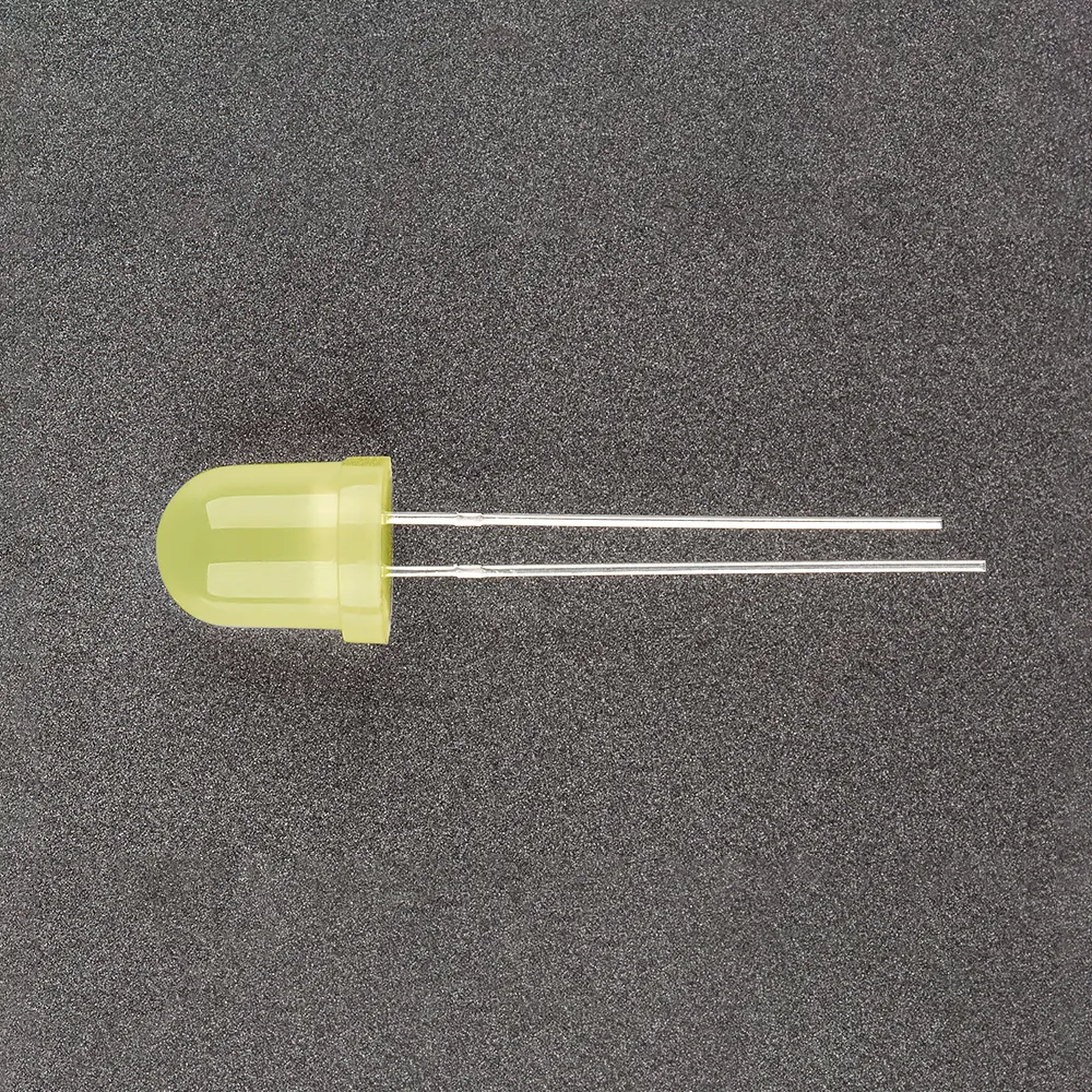 Поставка под заказ от 5000 шт. Выводной круглый светодиод, d=8 мм, диффузная желтая линза. Цвет свечения желтый (585-595 нм). Угол излучения 30-40°. Сила света Iv=200-450 мкд, If=20 мА. VF=1.8-2.4 В. Рекомендуемый постоянный рабочий ток <16-17 мА.