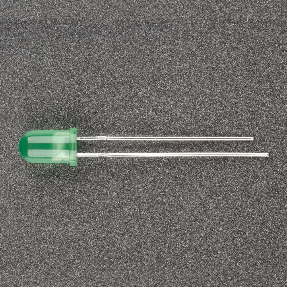 Поставка под заказ от 5000 шт. Выводной круглый светодиод, d=5 мм, диффузная зеленая линза. Цвет свечения зеленый (565-570 нм). Угол излучения 40-60°. Сила света Iv=50-100 мкд при If=20 мА. VF=1.8-2.3 В. Рекомендуемый постоянный рабочий максимальный ток 16-17 мА.