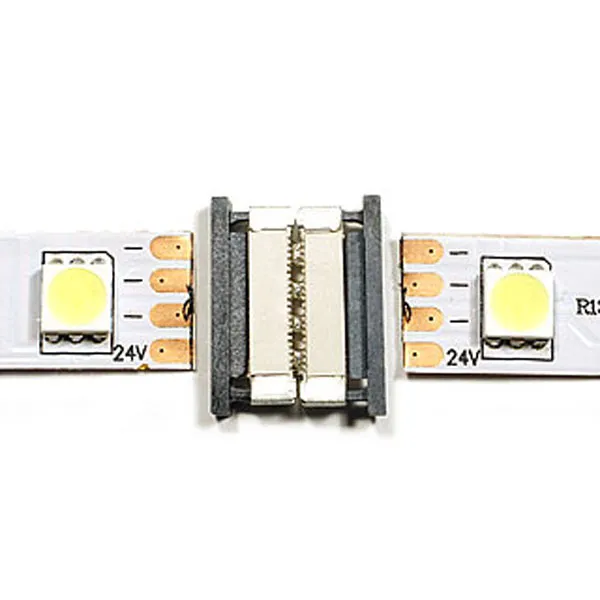 2-х сторонний зажимной разъем (керамика) для соединения 2-х отрезков светодиодных одноцветных лент шириной 10мм. Без провода. Максимальный допустимый ток 4А. Не рекомендуется соединять длинные отрезки лент!