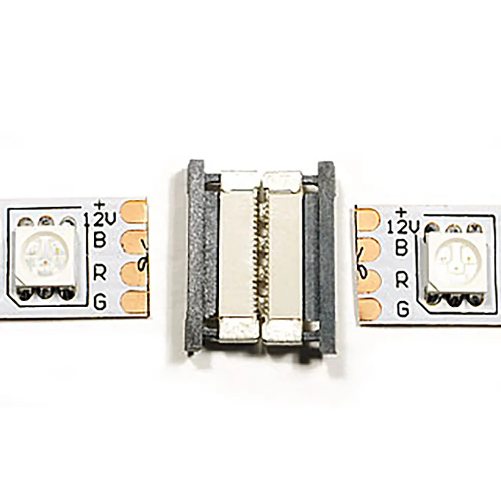 2-х сторонний зажимной разъем (керамика) для соединения 2-х отрезков светодиодных RGB лент шириной 10мм. Без провода. Максимальный допустимый ток 4А. Не рекомендуется соединять длинные отрезки лент!