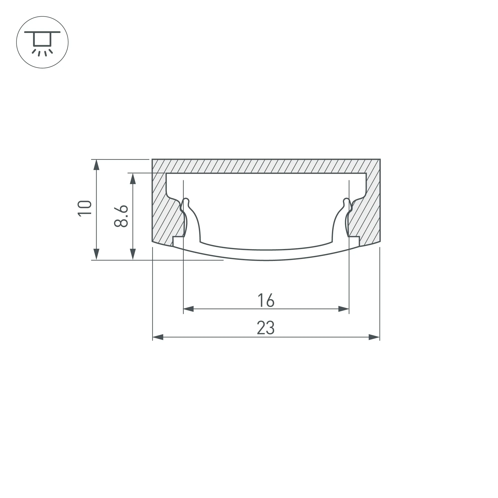 Комплект с экраном. Алюминиевый анодированный профиль для светодиодных лент и линеек. Габаритные размеры (L×W×H): 2000x22,6x8,5 мм. Ширина площадки для ленты 20 мм. Аксессуары приобретаются отдельно.