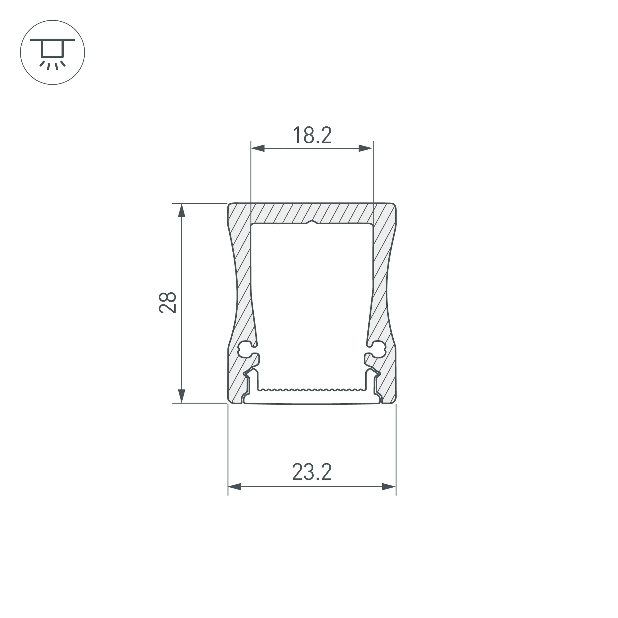 Поставка под заказ от 40 компл. Комплект с экраном. Алюминиевый анодированный профиль для светодиодных лент и линеек. Габаритные размеры (L×W×H): 2000x23,2x28 мм. Ширина площадки для ленты 18,2 мм. Аксессуары приобретаются отдельно. Цена за комплект.