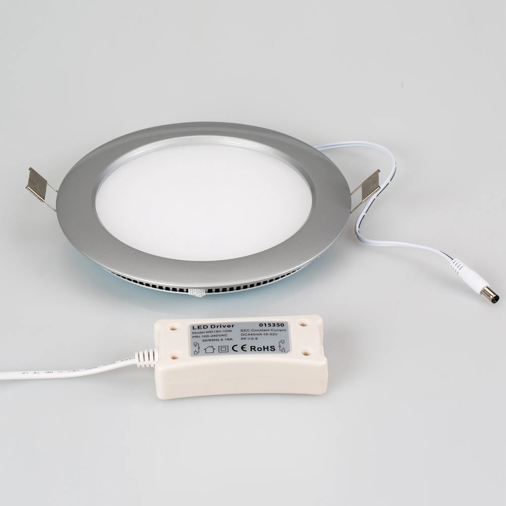 Тонкая круглая панель с эксклюзивным дизайном рамки. Цвет корпуса - серебро. Мощность 10Вт. Цвет свечения ДНЕВНОЙ БЕЛЫЙ 4000K. Световой поток 670-880 лм. Угол 120°. Размер Ф179 x 16 мм, установка в отверстие 170 мм. Питание от сети 220VAC, драйвер в комплекте (DC490mA, 18-22V).
