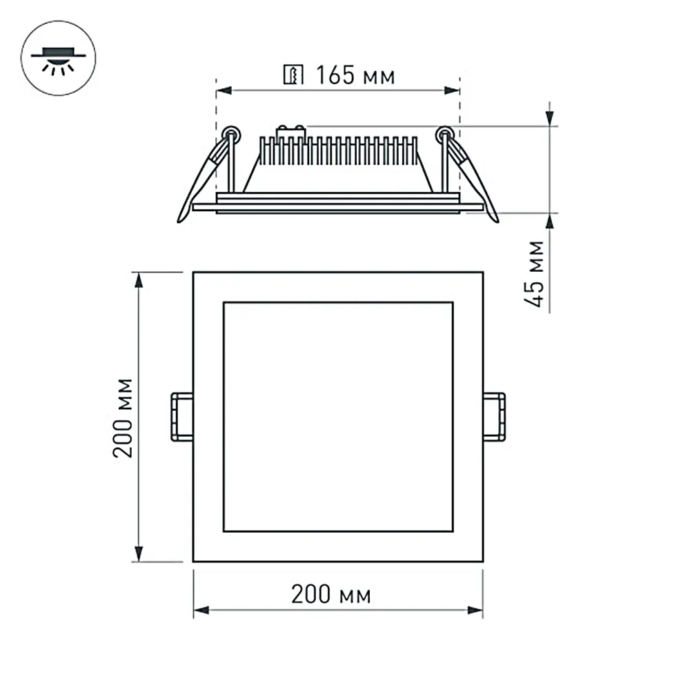 Поставка под заказ от 100 шт. 16Вт / ТЕПЛЫЙ 2700-3000K / 1250лм / 120°. Размер 200x200x45мм (в отверстие 165x165мм). Стеклянная панель. Корпус квадратный, белый. Питание от сети 230VAC, драйвер в комплекте 300mA 45-65V. Диапазон рабочих температур -10°..+40°C. Для помещений.