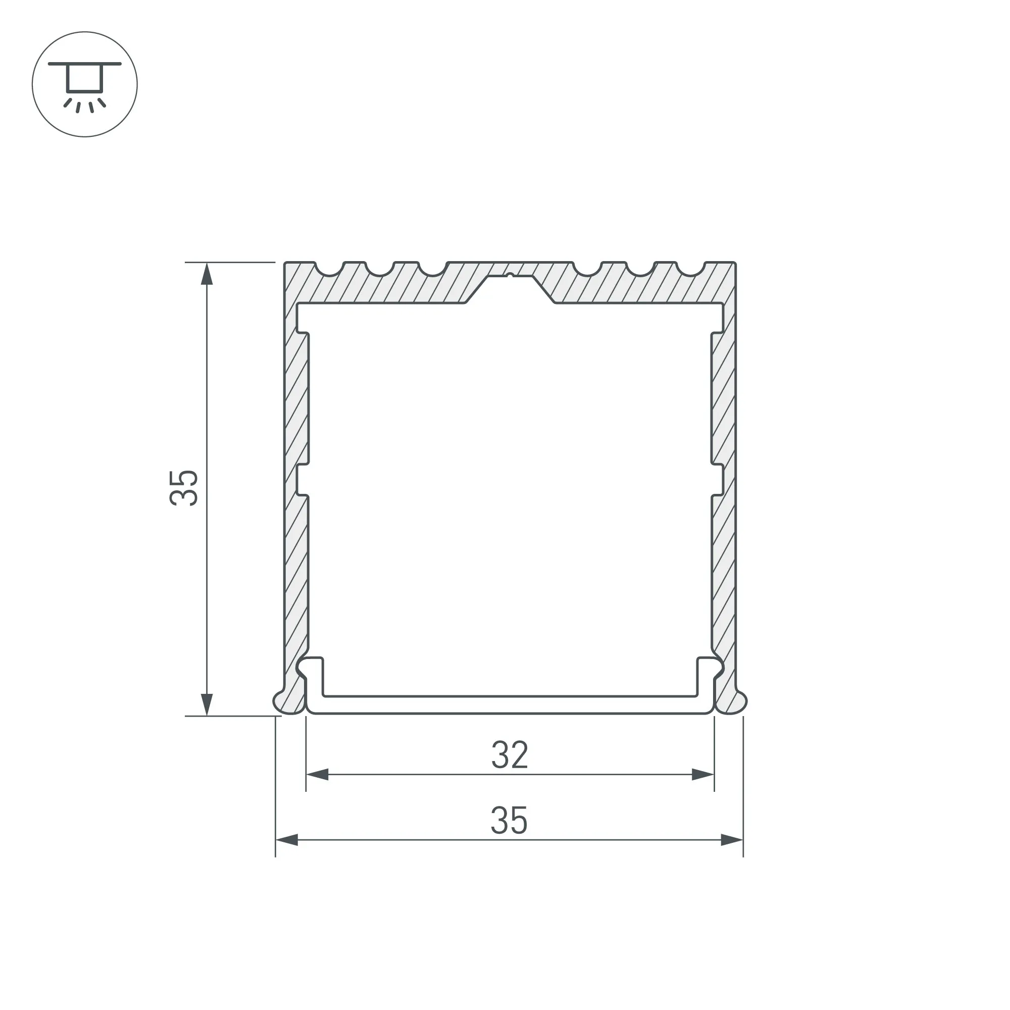 Алюминиевый анодированный накладной профиль для светодиодных лент и линеек. Габаритные размеры (L×W×H): 2000x35x35 мм. Ширина площадки для ленты 32 мм. Экраны, заглушки и другие аксессуары приобретаются отдельно. Цена за 1 метр.