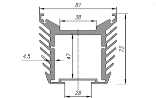 Отрезок профиля 10см. Алюм.анодированный корпус 140Вт/м, 81мм х 71мм х 100мм. Отсек для БП 48.5мм х 43.5мм. Экран-любое стекло, PC шириной 77мм(толщина не более3мм). Для изготовления прожекторов, под линейки шириной до 37мм. Заглушки, крепление (под DIN-рейку) отдельно.
