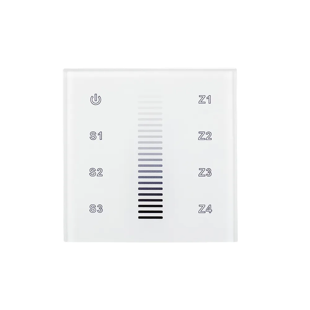 Встраиваемая сенсорная панель для с/д одноцветных лент. Работает вместе с контроллерами серии SR-1009x. Стеклянная Touch-панель, цвет белый. Управление 4 зонами по радиоканалу. Питание 220V. Размер 86x86x29 мм. Аналогичные по дизайну панели в серии SMART (устройства не совместимы).