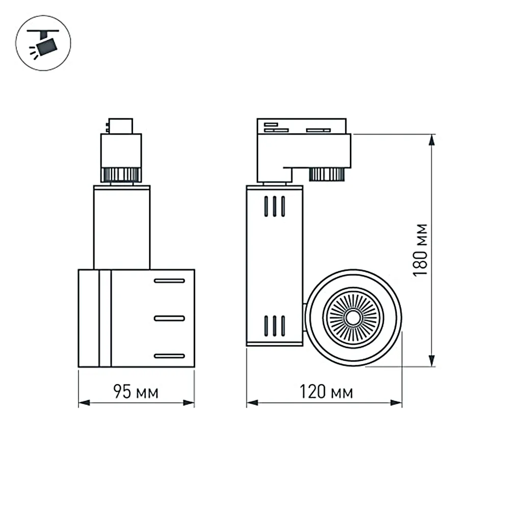 Подвесной светильник для треков/шин 2 провода. Светодиод CREE 9W, цвет ТЁПЛЫЙ 3000K, св.поток 675-765лм, угол 24°. Корпус белый. Мощность 9Вт, питание AC180-240V. Максимальные габариты HxLxW: 180х95х120 мм, драйвер встроенный (200mA, 30-45V).