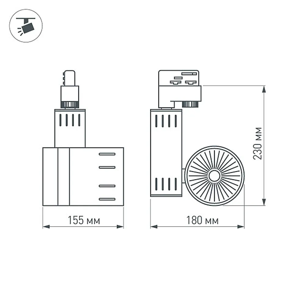 Подвесной светильник для треков/шин 4 провода. Светодиод CREE 30W, цвет ТЁПЛЫЙ 3000K, св.поток 2400-2600 лм, угол 24°. Белый корпус. Мощность 30Вт, питание AC180-240V. Максимальные габариты HxLxW: 230х155х180 мм. Драйвер встроенный 25,5-43V, 700mA.