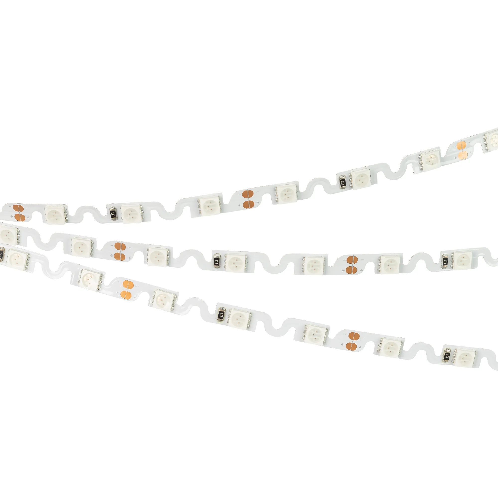 Гибкая лента с фигурной платой в форме волны, легко изгибается на плоскости. Светодиоды smd 5060, 48шт/м (240шт на 5м), белая плата 6.1мм, скотч 3М. Цвет ЖЁЛТЫЙ. Питание 12V, мощность 11.5 Вт/м (57.5 Вт на 5м), угол 120°. Размеры 5000х6.1х2.2мм. Мин.отрезок 62.5мм, 3 светодиода. Цена за 1м.