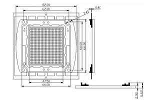 Мощный светодиод, размер 82×66×6,6 мм. Чипы USA Bridgelux 45mil. Цвет свечения белый (6000-6500 К). Угол 120°. Световой поток 30000-33000 лм при If= 7000 мА, P=300 Вт. VF=45-50 В.