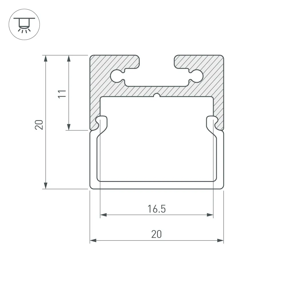 Компактный подвесной/накладной профиль 20х11мм. Анодированный алюминий. Длина 2000мм. Цена за 1м. Экраны, заглушки отдельно. Для светодиодных лент шириной до 15мм. Заменяется на арт.023720