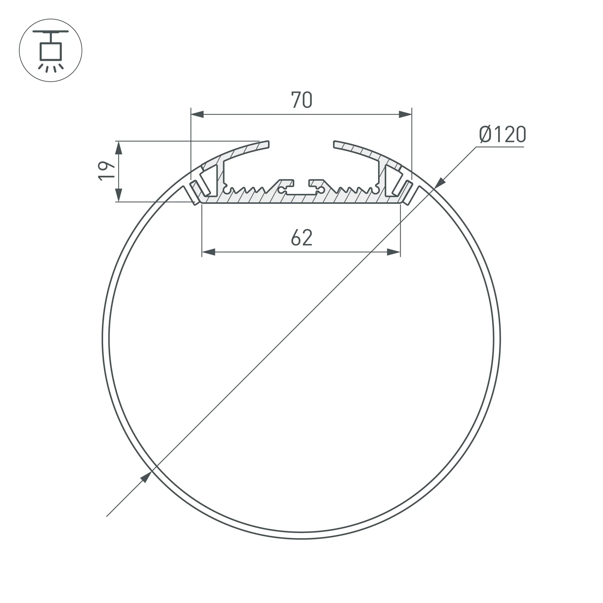 Алюминиевый анодированный профиль для светодиодных лент и линеек. Габаритные размеры профиля (L×W×H): 2000x70x19 мм. Габаритные размеры профиля с экраном (L×D): 2000xD120 мм. Ширина площадки для ленты 62 мм. Экраны, заглушки и другие аксессуары приобретаются отдельно. Цена за 1 метр.
