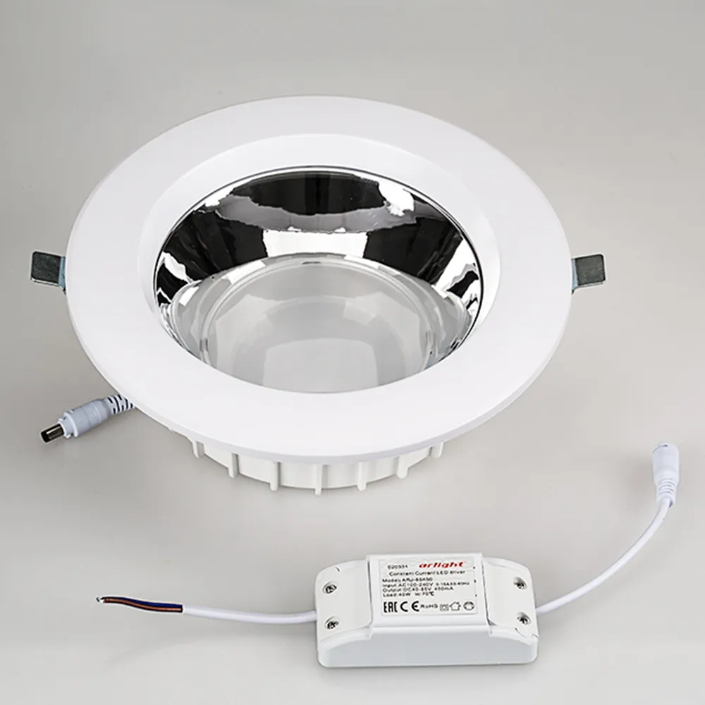 Встраиваемый светильник 30Вт, цвет БЕЛЫЙ 6000K, светодиоды smd 2835 60шт, св.поток 2450-2500 лм, угол 90°, CRI>80 . Круглый белый корпус, алюминий опресованный в термопласт. Питание AC 100-240V (драйвер в к-те 450mA 70V). Габариты: D230хH86 мм, врезное отверстие 190-200 мм.