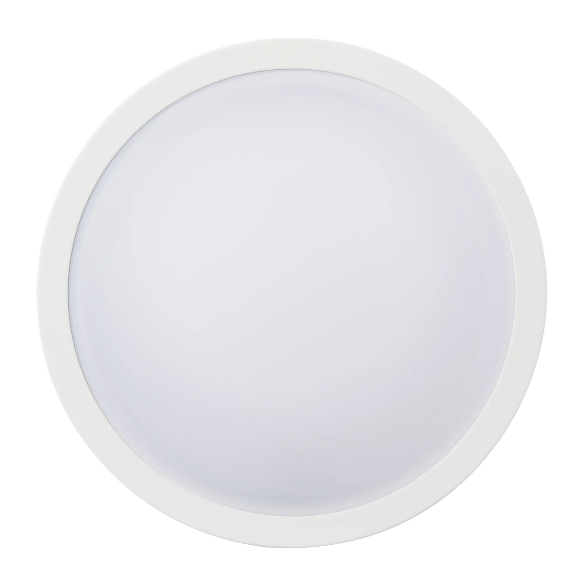 Круглый светильник с контурным свечением. Корпус IP44 белый + вставка поликарбонат PC. Цвет ДНЕВНОЙ БЕЛЫЙ 4000К, св.поток 1050-1200 лм, угол 120°+180°. Питание 180-240VAC, 15Вт (драйвер 400mA 26-40V в комплекте). Размеры 115х40 мм, установка в отв.105 мм, высота мин.40 мм.