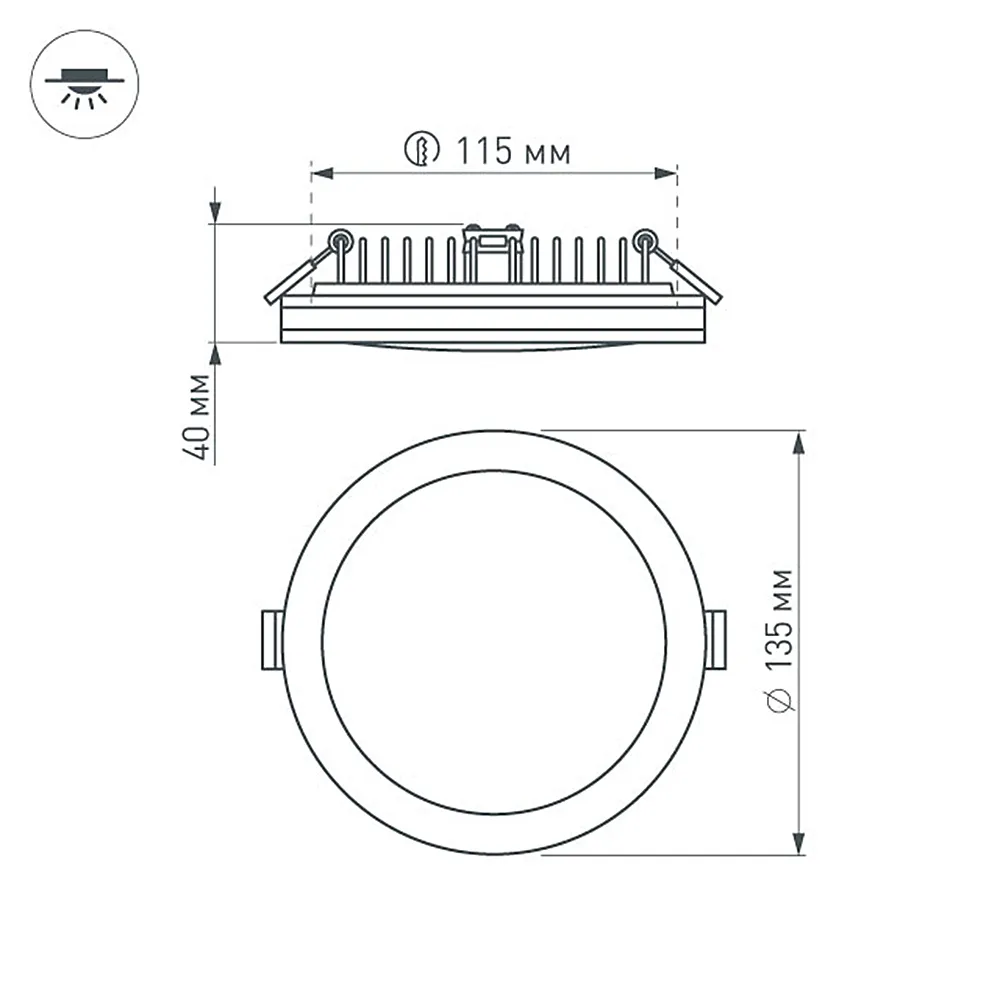 Круглый светильник с контурным свечением. Корпус IP44 белый + вставка поликарбонат PC. Цвет ДНЕВНОЙ БЕЛЫЙ 4000К, св.поток 1400-1600 лм, угол 120°+180°. Питание 180-240VAC, 20Вт. Драйвер в комплекте 500mA 28-42V. Размеры 135х40 мм, установка в отв.125 мм, высота мин.40 мм.