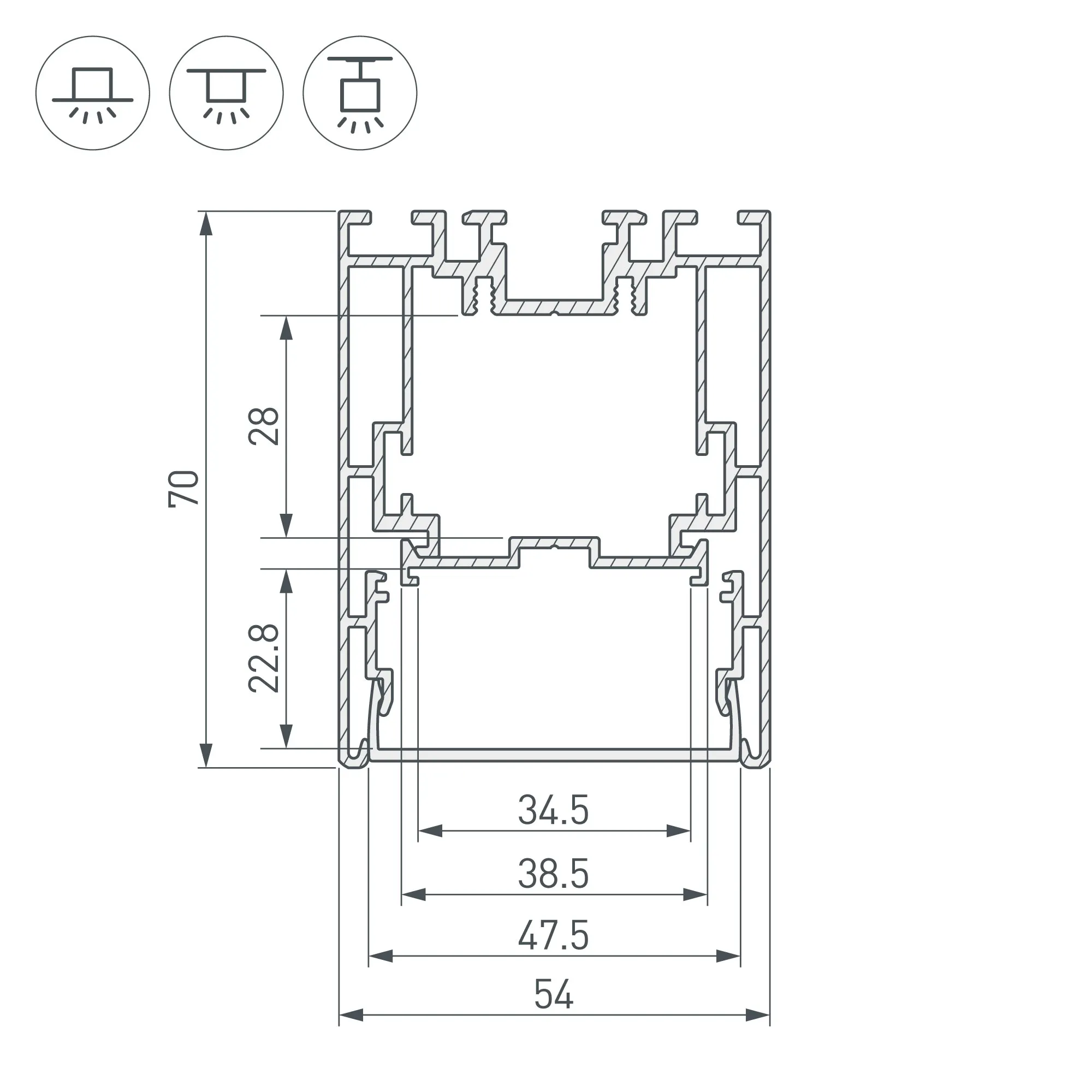 Профиль с экраном S2-LINE-5470-2500 ANOD+OPAL (Arlight, Алюминий)