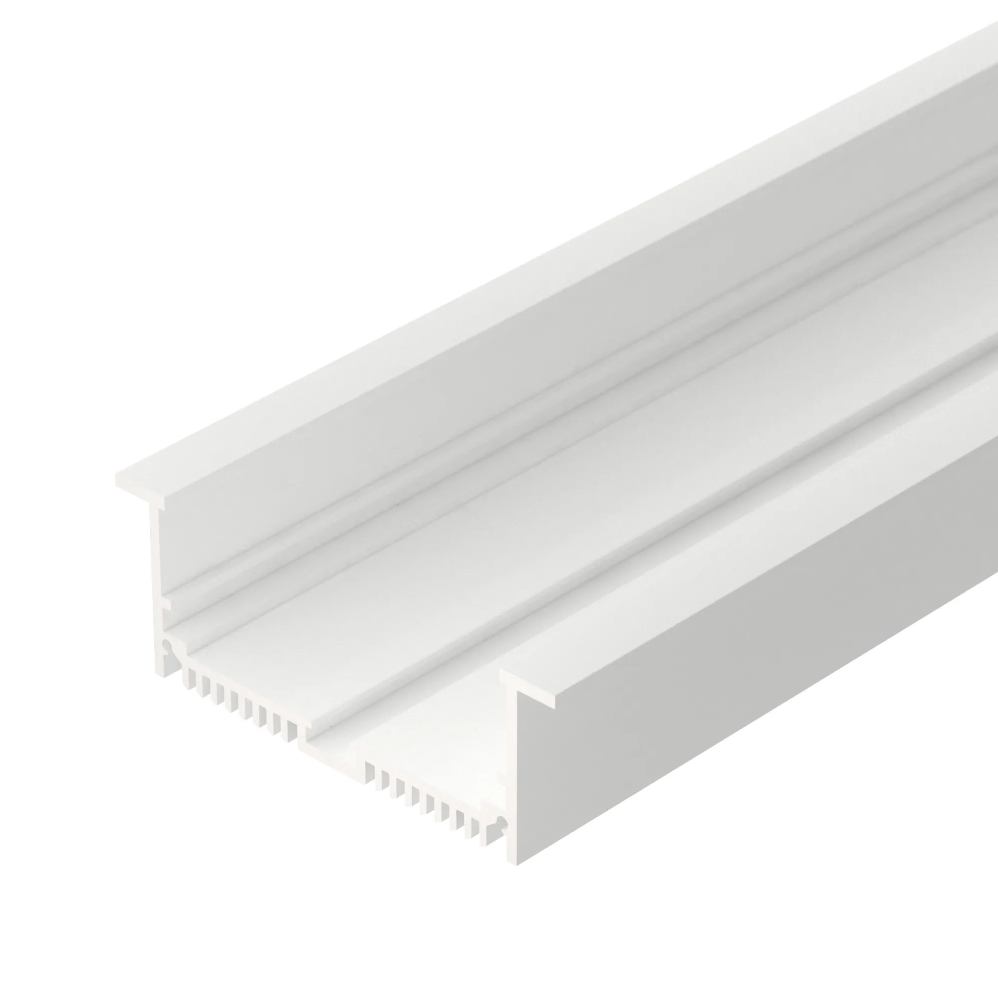 Комплект с экраном. Алюминиевый профиль для светодиодных лент и линеек. Цвет - белый RAL9003 (порошковая окраска). Габаритные размеры (L×W×H): 2500x88x32 мм, паз для установки 74 мм. Ширина площадки для ленты 60 мм. Аксессуары приобретаются отдельно.