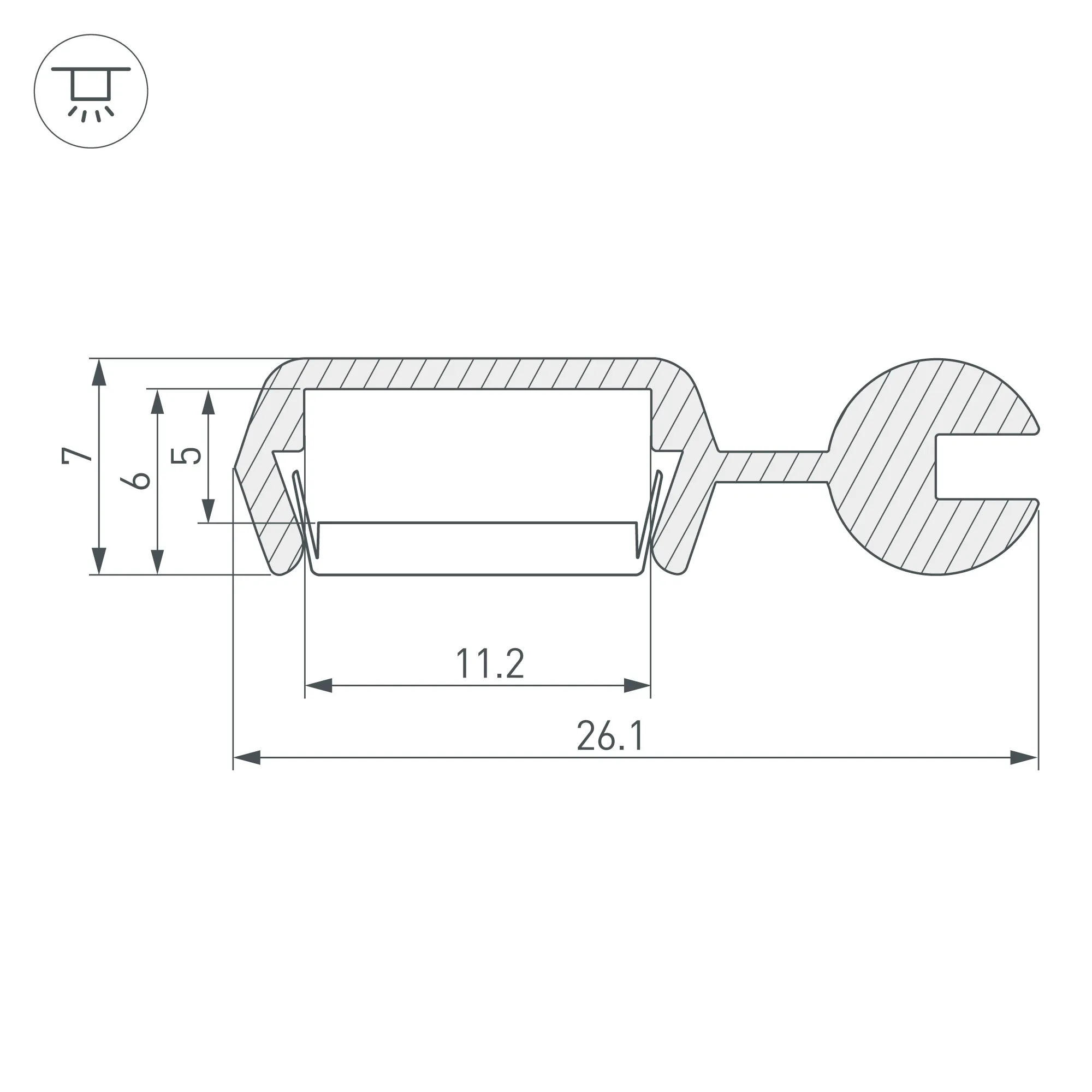 Алюминиевый анодированный профиль для светодиодных лент и линеек. Возможность наклона до 90° оси света для подсветки потолков и ниш. Легко устанавливается в труднодоступных нишах. Габаритные размеры (L×W×H): 2000x26x7 мм. Ширина площадки для ленты 11 мм. Экраны, заглушки и другие аксессуары приобретаются отдельно. Цена за 1 метр.
