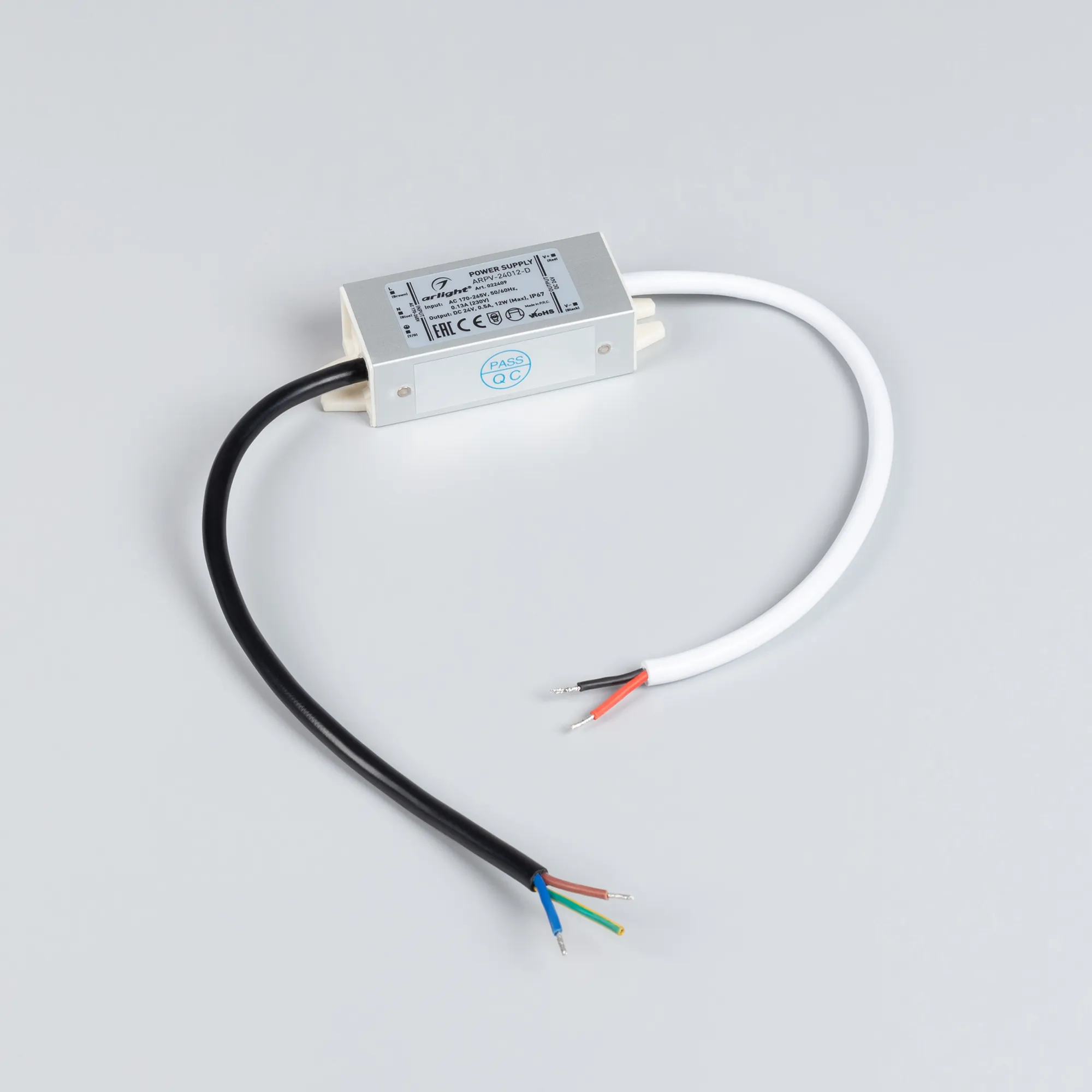 Источник напряжения с гальванической развязкой для светодиодных изделий. Входное напряжение 170-265 VAC. Выходные параметры: 24 В, 0,5 А, 12 Вт. Герметичный алюминиевый корпус IP 67. Рабочая температура -30…+50C⁰. Габаритные размеры длина 80 мм, ширина 30 мм, высота 20 мм. Гарантийный срок 3 года.