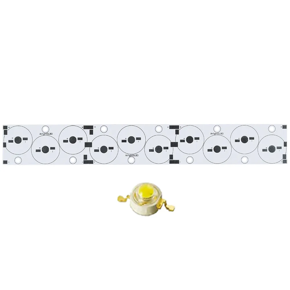 Алюминиевая плата 1,6мм для 10-ти одноцветных светодиодов Emitter (последовательно). Разделяется на группы 3+3+4шт. Цвет - белый. Прямоугольник 240х34мм. Под одиночные линзы. Подходит для использования с профилями SL80.