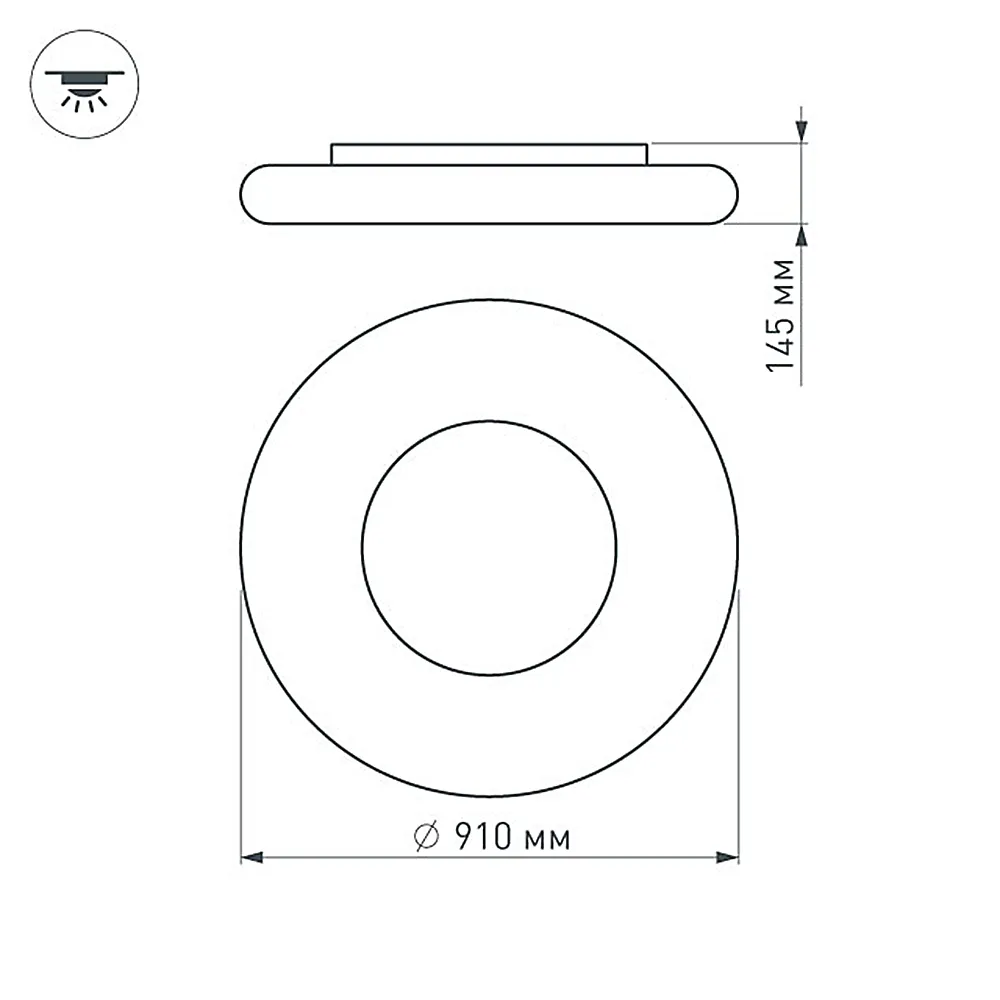 Накладной светильник 120Вт, белый круглый корпус. Цвет ТЕПЛЫЙ БЕЛЫЙ 3000K, св.поток 12000лм, CRI(Ra)>80, угол 140°. Размер Ф910x145мм. Питание AC220-240V, 120Вт, драйвер встроенный.
