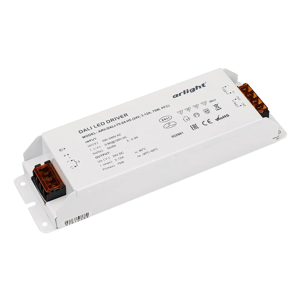 В магазине Арлед Маркет Вы можете купить "Блок питания ARV-DALI-75-24-H5 (24V, 3.12A, 75W, PFC) (Arlight, IP20 Пластик, 5 лет)"