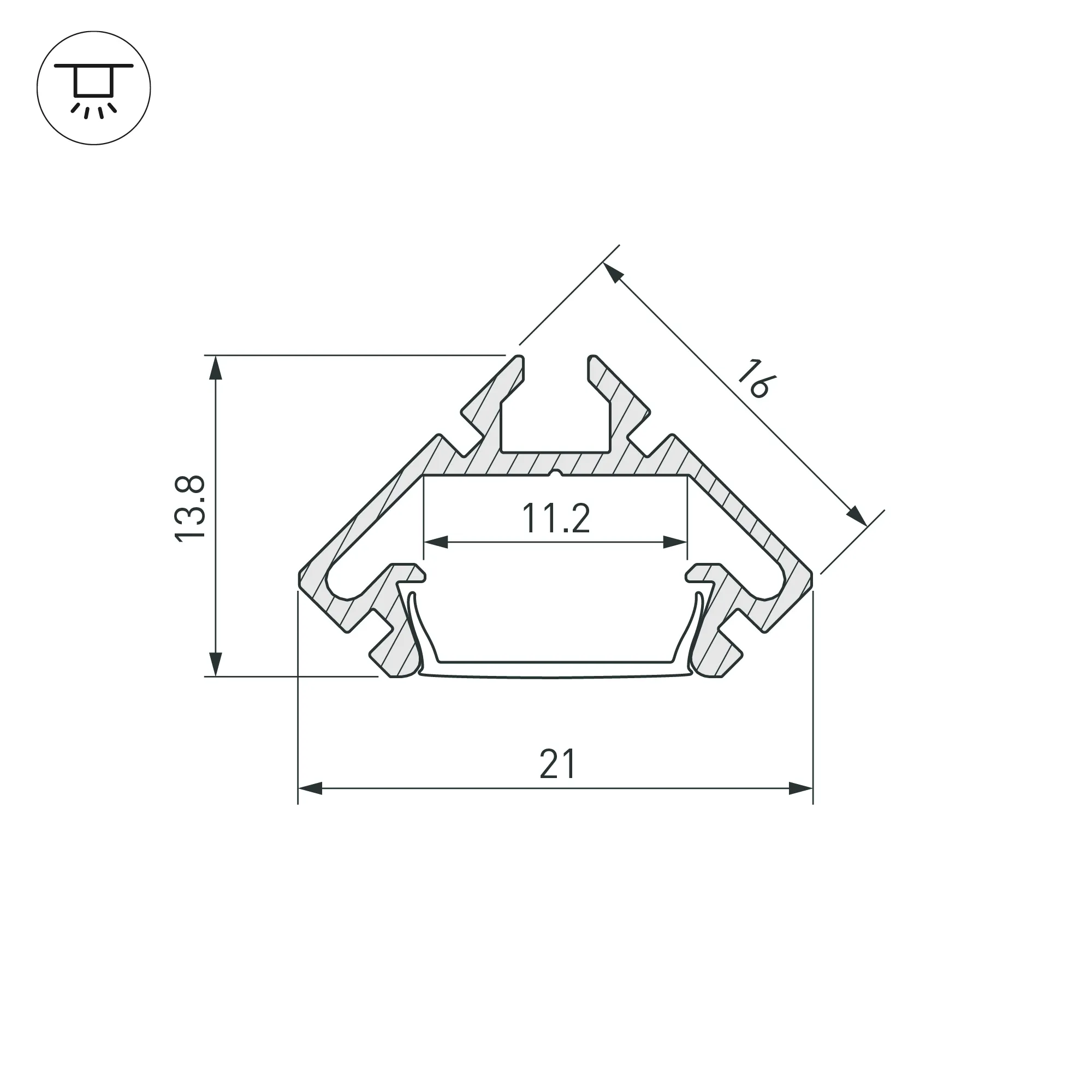 Алюминиевый анодированный угловой профиль для светодиодных лент и линеек. Габаритные размеры (L×W×H): 2000x16x16 мм. Ширина площадки для ленты 11,2 мм. Экраны, заглушки и другие аксессуары приобретаются отдельно. Цена за 1 метр.