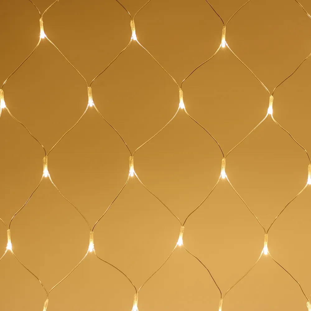Светодиодная сеть Home. 1500x1500 (длина 1500 мм, высота 1500 мм). Цвет свечения ТЕПЛЫЙ БЕЛЫЙ (3000 К). 150 светодиодов размером 5 мм со статическим и 8 динамическими эффектами свечения с резким световым рисунком (прозрачная вогнутая линза). Провод прозрачный, ПВХ. Питание 230 В, Мощность 15 Вт, защита IP20, применение в помещении. Аксессуары для подключения и выбора режима свечения в комплекте.