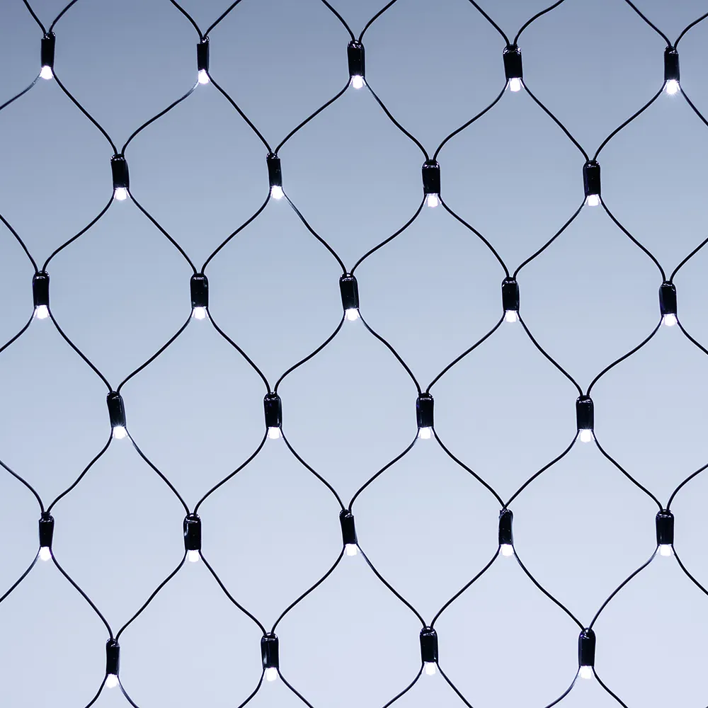 Светодиодная сеть Classic. 2500x2500 (длина 2500 мм, высота 2500 мм). Цвет свечения БЕЛЫЙ (6000 К). 432 светодиода размером 7 мм со статическим и 8 динамическими эффектами свечения с резким световым рисунком (прозрачная вогнутая линза). Провод черный, ПВХ. Питание 230 В, Мощность 26 Вт,защита IP65, применение в помещении и на улице под навесом Аксессуары для подключения и выбора режима свечения в комплекте.