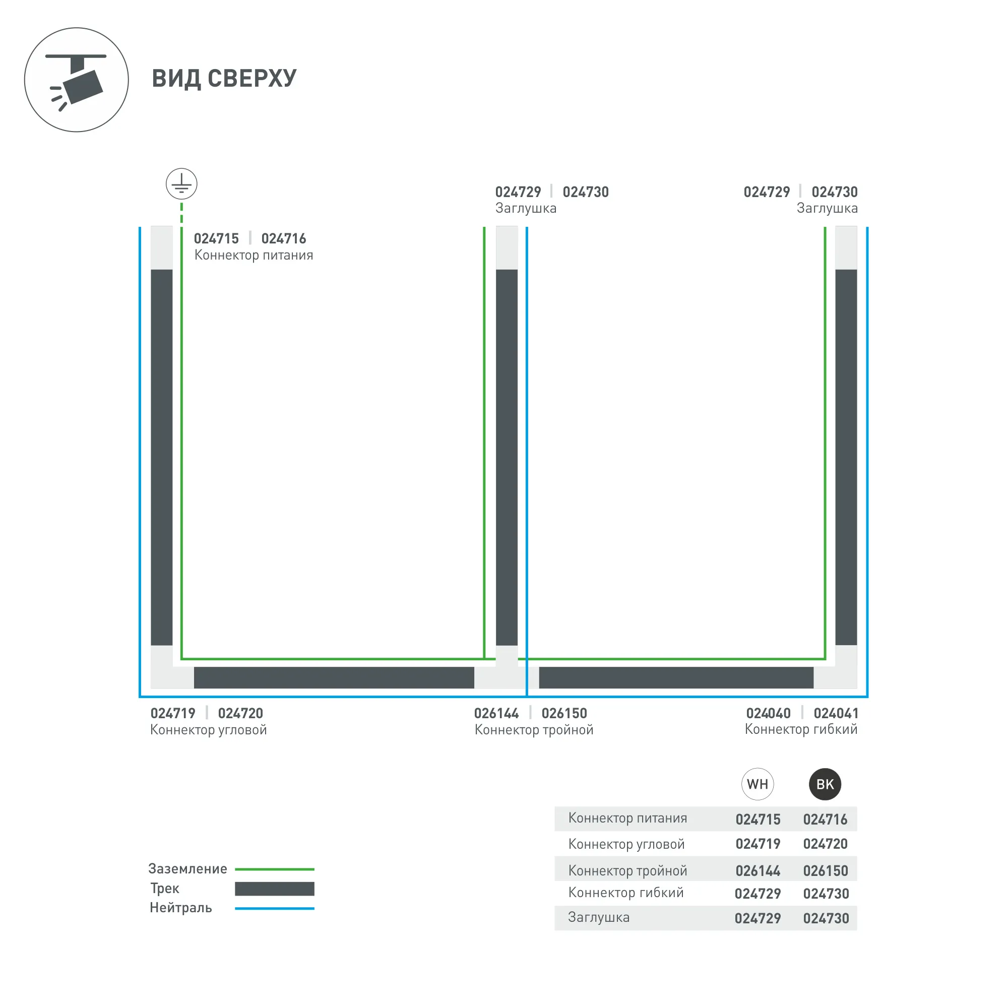 Коннектор-заглушка для подачи питания в треки 4TR, правая (определение правого коннектора происходит относительно контакта заземления системы). Цвет белый.