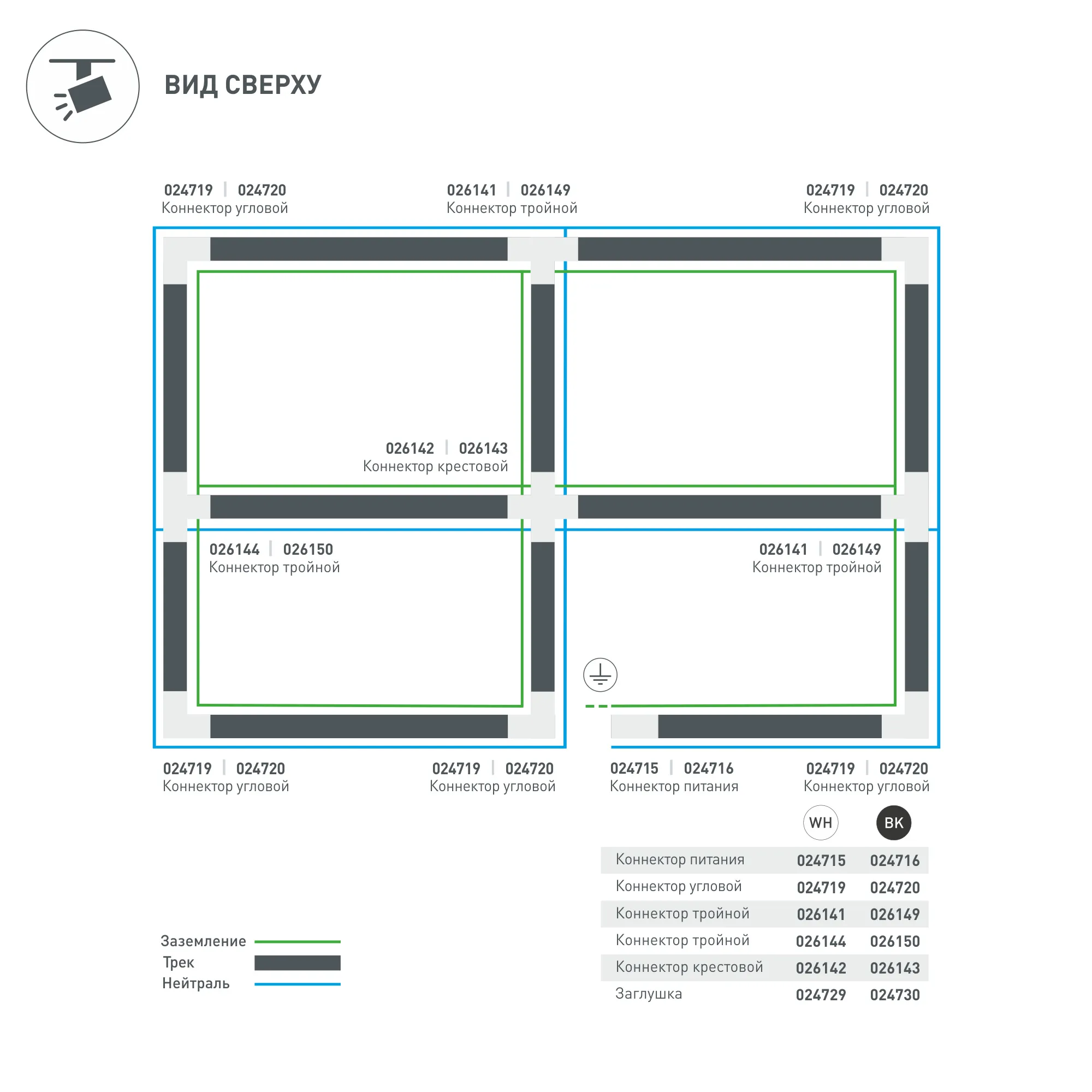 Угловой коннектор 90 градусов, питание по внутренней стороне. Цвет белый. 99х99х33 мм с контактами, 66х66х33 мм без контактов. При использовании с треками и аксессуарами другой серии возможно отличие по цвету.