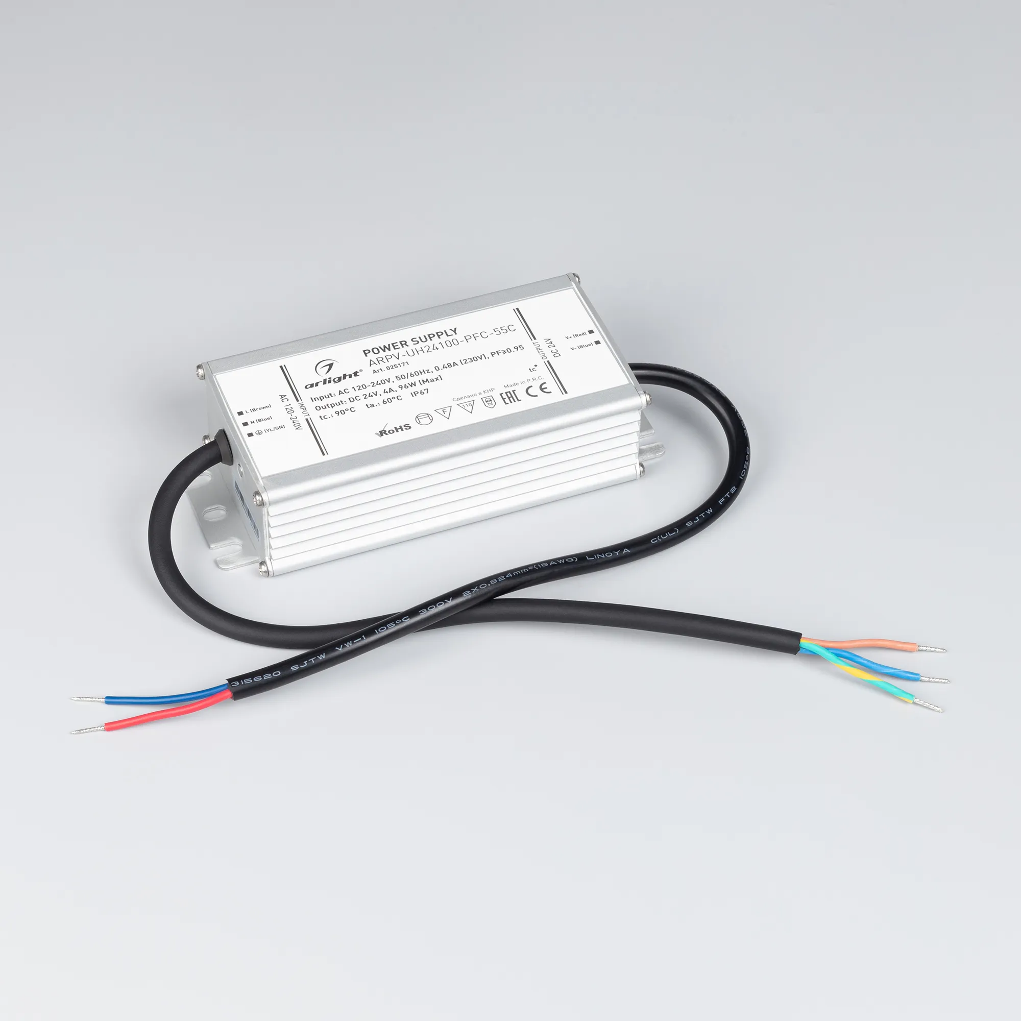 В магазине Арлед Маркет Вы можете купить "Блок питания ARPV-UH24100-PFC-55C (24V, 4.2A, 100W) (Arlight, IP67 Металл, 5 лет)"