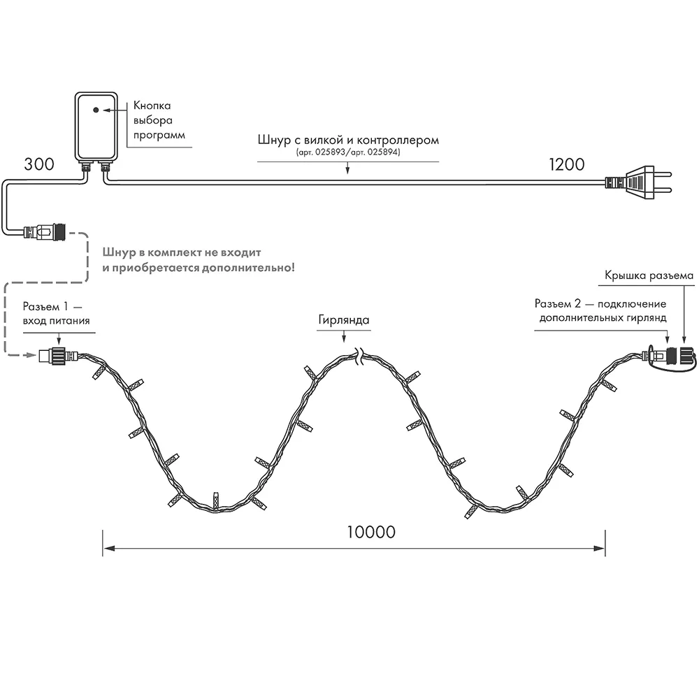 Светодиодная нить Pro. Размер 10000 мм. Цвет свечения RGBY, 100 светодиодов размером 7 мм с динамическими и статическими эффектами свечения с резким световым рисунком (прозрачная вогнутая линза). Смена эффектов и управление осуществляется с помощью контроллера с пультом. Провод черный, каучук. Питание 230 В, Мощность 7 Вт, защита IP65, применение в помещении и на улице под навесом. Аксессуары для подключения и управления приобретаются отдельно.