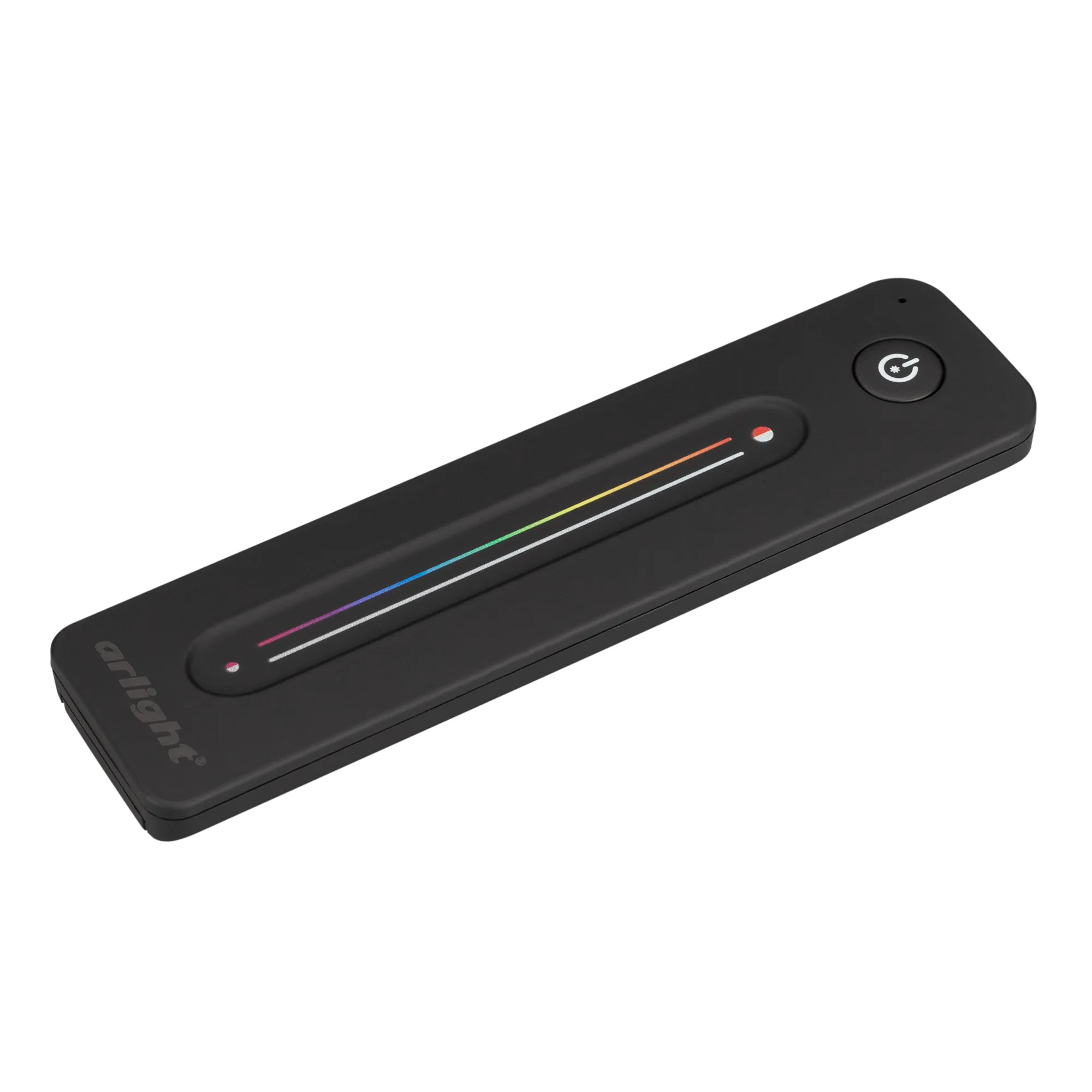 Пульт-слайдер 2.4 ГГц черного цвета для управления RGBW источниками света. 1 зона управления, память пользовательских настроек, управление температурой света с помощью сенсорного слайдера. Питание 3VDC (CR2032). Габариты 139x36x11 мм. Изготовлен из пластика с покрытием Soft Touch. Совместим с контроллерами и панелями серии SMART (поставляются отдельно).