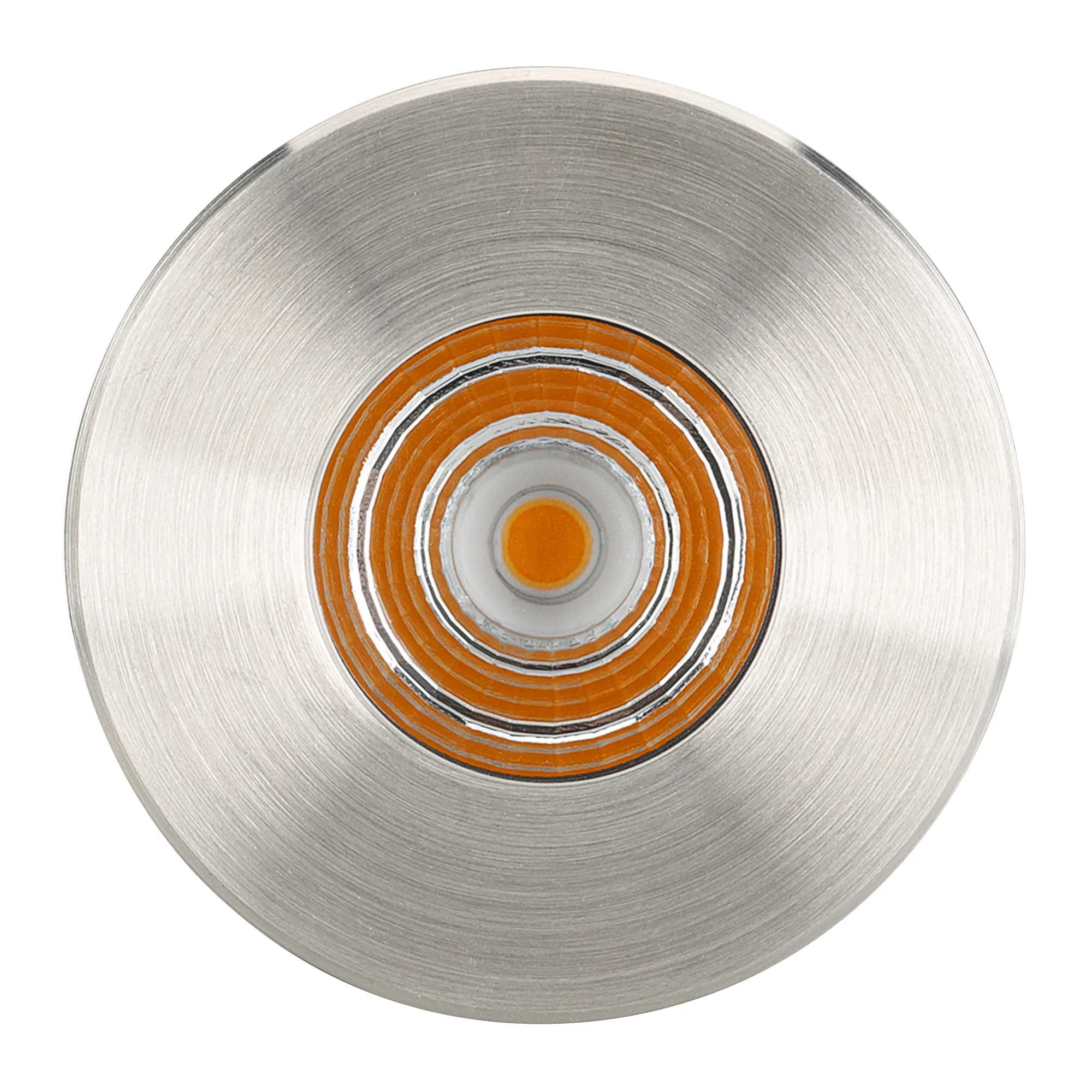 Встраиваемый светодиодный светильник для грунта и пола. Мощность 6Вт, световой поток 327лм, цвет ТЕПЛЫЙ 3000К. CRI(Ra)>80, угол 24°. Круглый влагозащищенный корпус IP67, нержавеющая сталь. Экран закалённое стекло. Питание AC100-245V, 6Вт. Размер DxH Ø65x80мм. Установка в отверстие DxH Ø53x110мм.