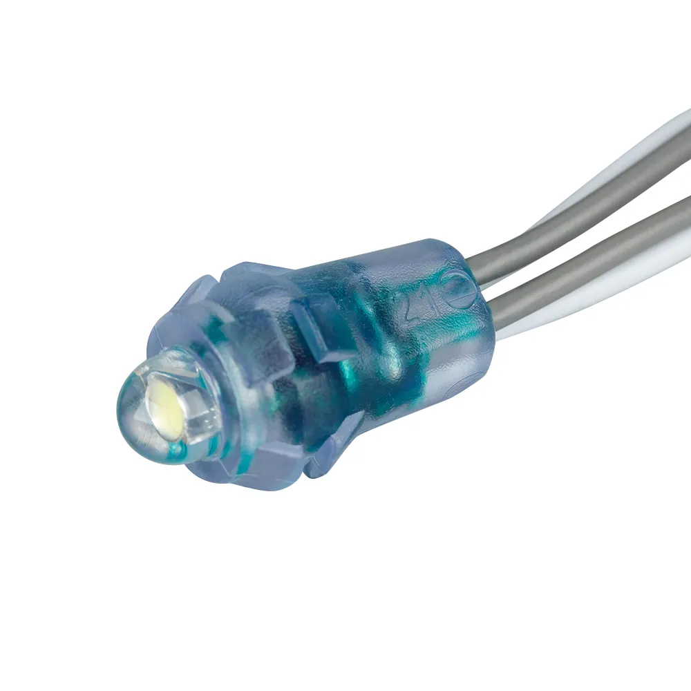 Герметичный светодиодный модуль IP65, 1 светодиод, БЕЛЫЙ 15000K, напряжение 5 В, мощность 0.12 Вт, светодиод DIP 7 мм, угол 160°. 50 шт на проводе, расстояние между модулями 70 мм. Размер Ø12×26 мм. Не рекомендуется применять в условиях прямого попадания влаги. Гарантия 1 год.