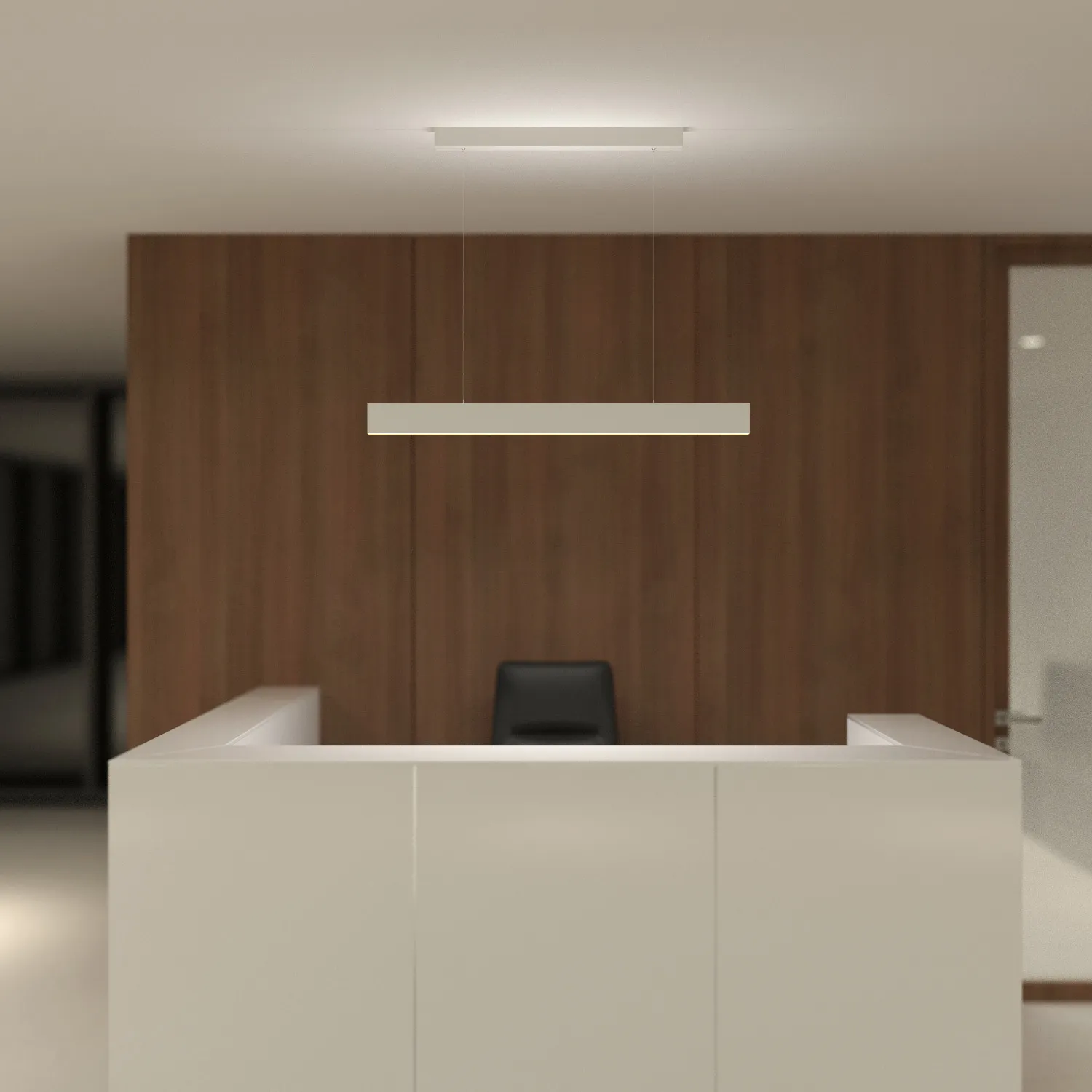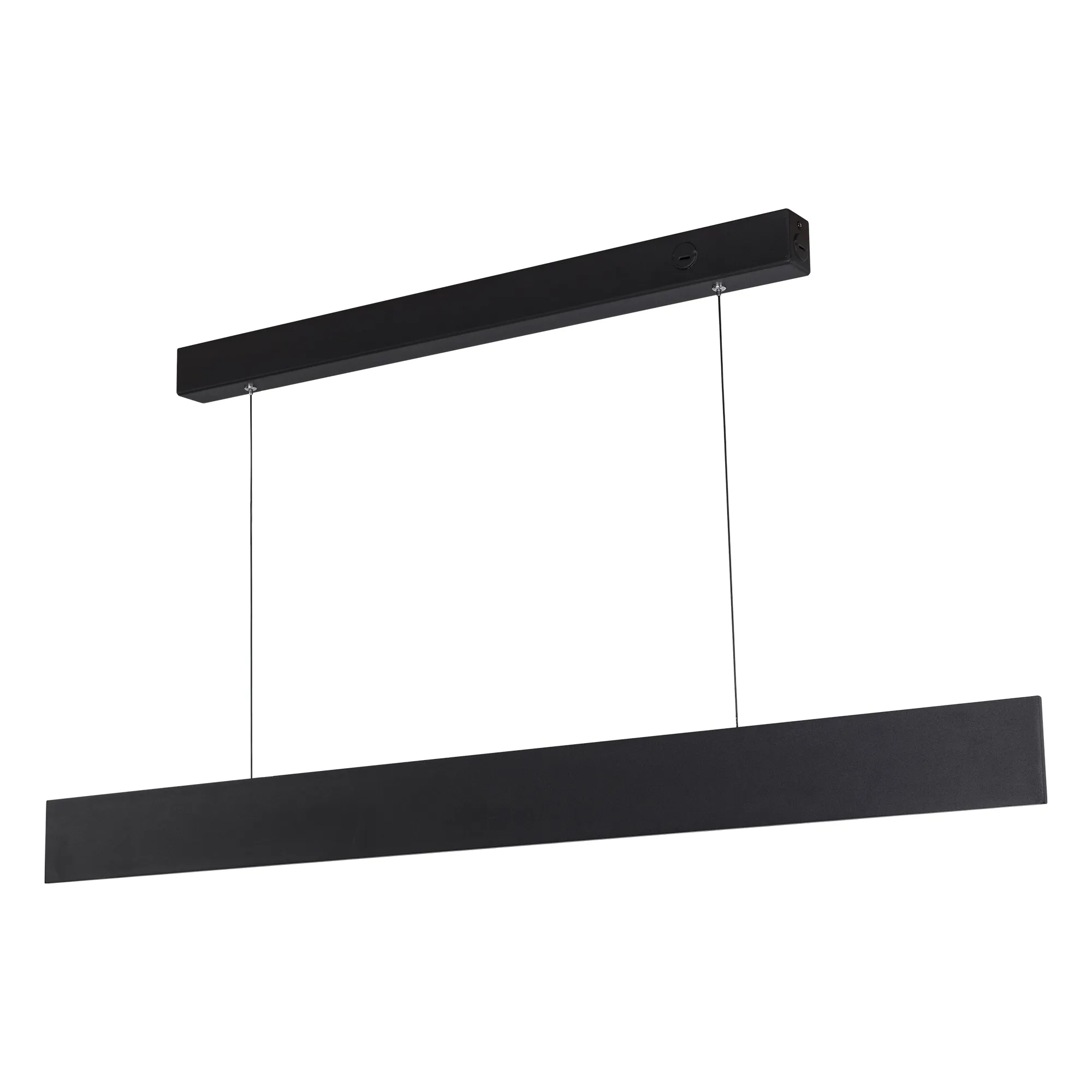 Подвесной линейный светильник 30Вт. Цвет ТЕПЛЫЙ 3000K, св.поток 1800лм, CRI>90, угол 110°+110°. Корпус из черного алюминия. Размер LxWxH 1004x8x80мм. Длина подвеса 500-1500мм. Питание AC 220-240V, 30Вт, драйвер встроенный (DC700mA, 33-40V).