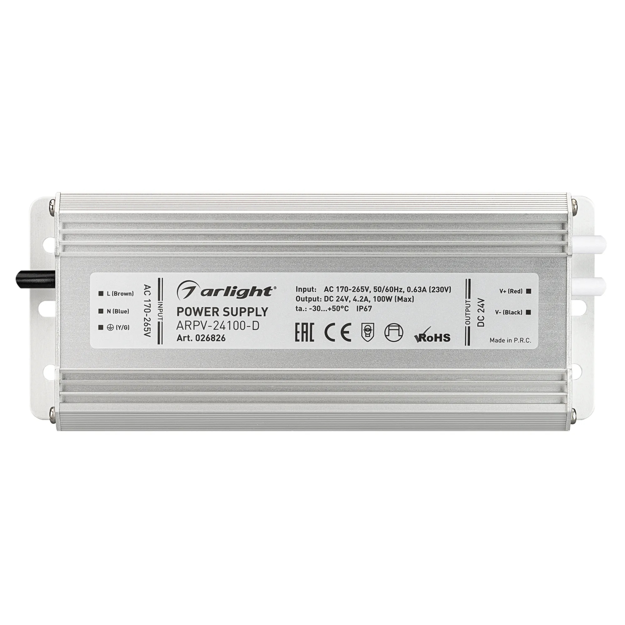 В магазине Арлед Маркет Вы можете купить "Блок питания ARPV-24100-D (24V, 4.2A, 100W) (Arlight, IP67 Металл, 3 года)"