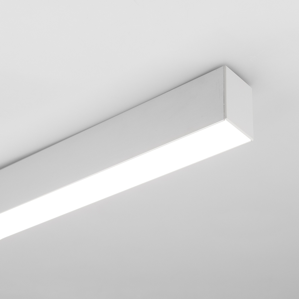 Линейный светильник 43 Вт/м, размер 37х50мм, длина 1000мм. Анодированный алюминий. Цвет свечения ДНЕВНОЙ 3800-4200K, угол 120° . Общая мощность 48 Вт, питание 230В. Установка на потолок на дюбель или подвес. Подвесы и дюбели поставляются отдельно.