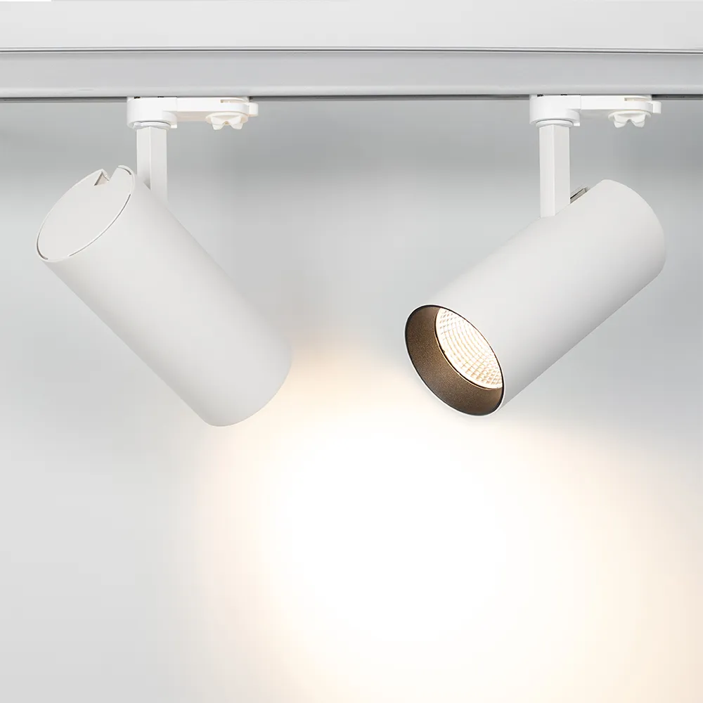 Трековый светильник 15Вт, белый круглый корпус, черная вставка, металл.