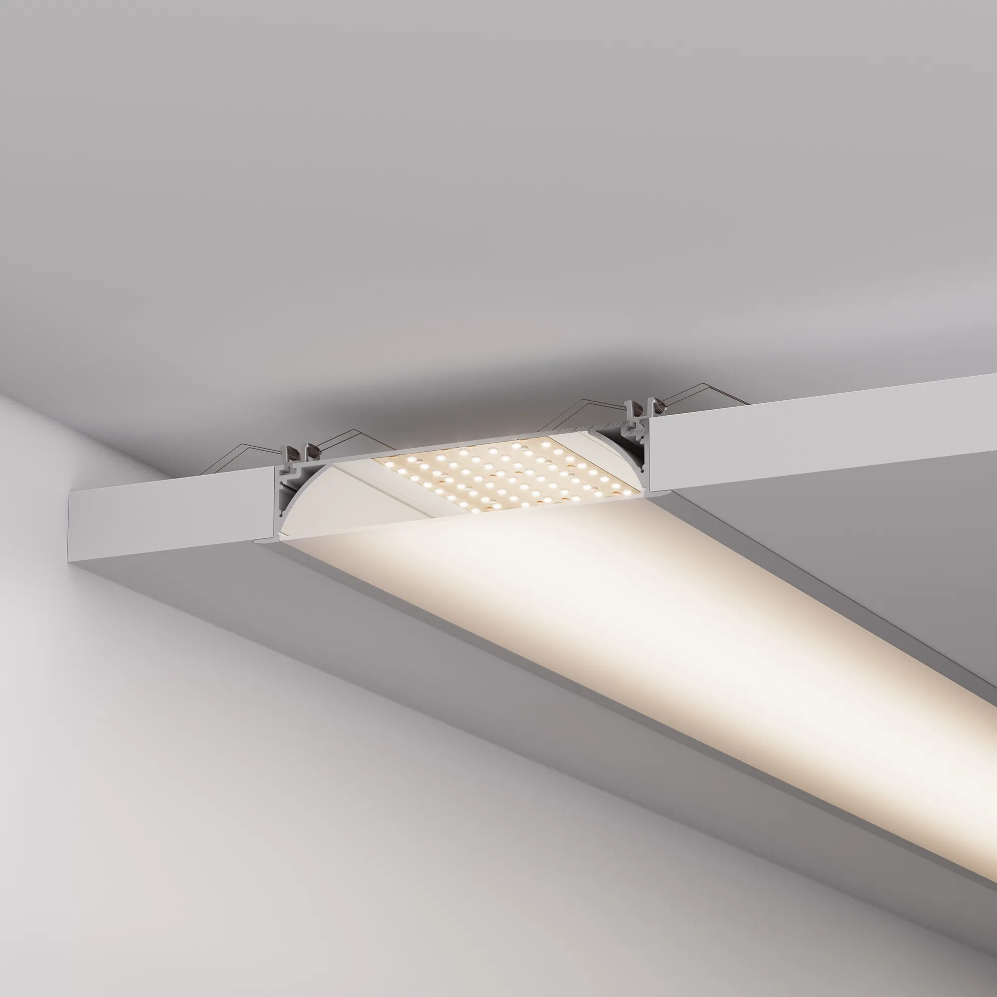 Комплект с экраном. Алюминиевый анодированный встраиваемый профиль для светодиодных лент и линеек. Габаритные размеры (L×W×H): 2000x200x35 мм. Ширина встраиваемой части - 180 мм. Ширина площадки для ленты 124,3 мм. Аксессуары приобретаются отдельно.