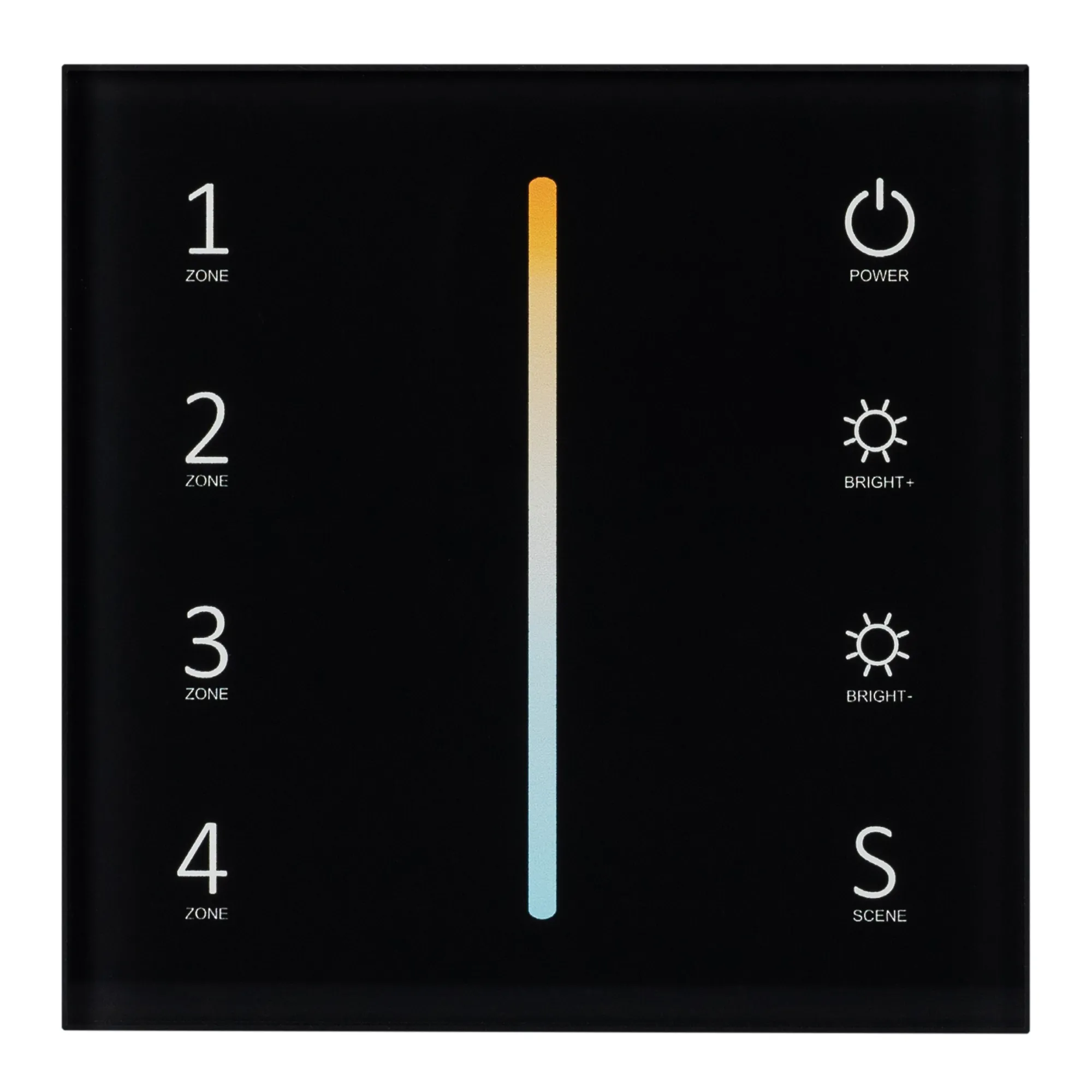 Встраиваемая сенсорная стеклянная панель 2.4 ГГц, цвет чёрный. Для управления температурой свечения (MIX/CCT) и яркостью с помощью сенсорной полосы. Питание/рабочее напряжение AC 100-240V, 4 зоны управления, память 4 сцен. Функция управления DMX512 устройствами. Габариты 86х86х35 мм. Панель совместима с контроллерами и пультами серии SMART.