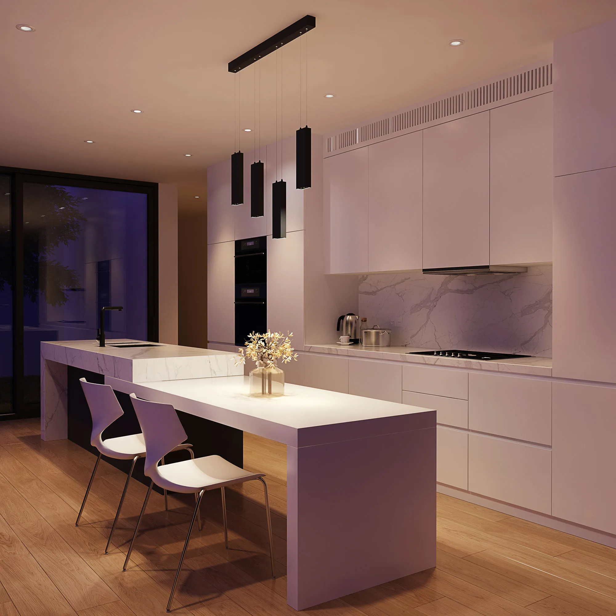 Подвесной светильник 4х6Вт, черный корпус, материал алюминий. Цвет ТЕПЛЫЙ БЕЛЫЙ 3000K, св.поток 2100лм, CRI(Ra)>80, угол 34°. Размер 835x50x1200мм. Питание AC220-240, драйвер в комплекте (30-42V, 600mA), 24Вт. Гарантия 3 года.