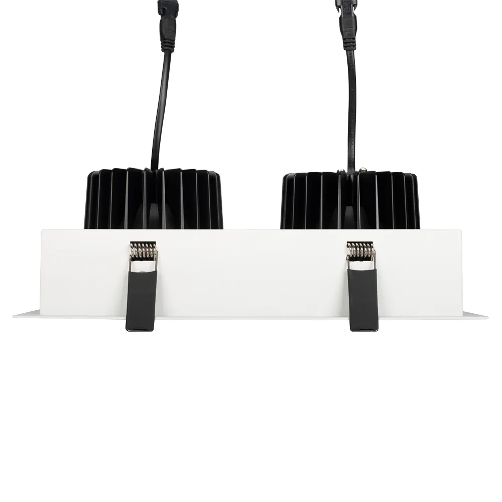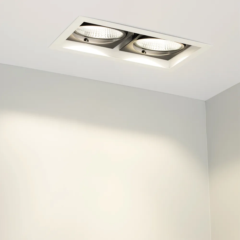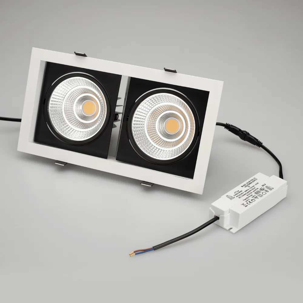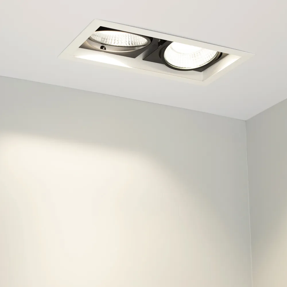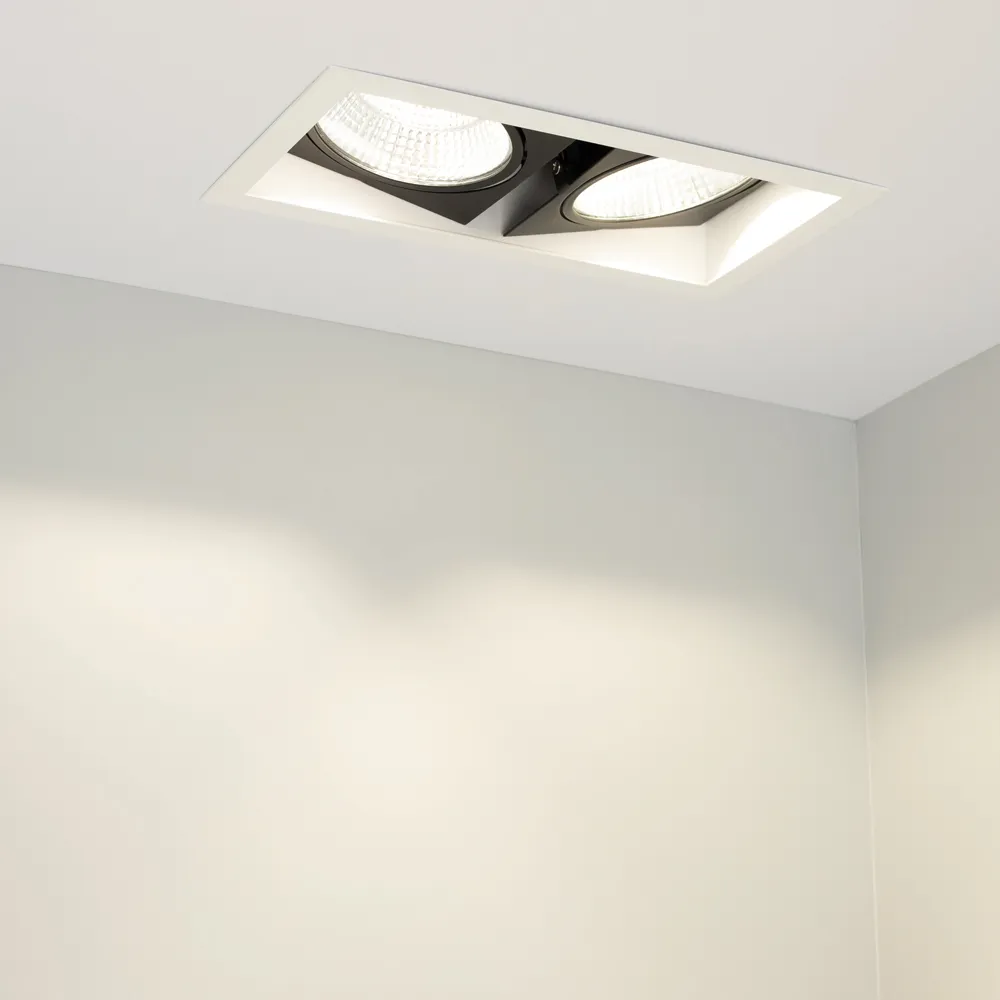 Встраиваемый карданный светильник. Угол 30° / 2x25Вт / БЕЛЫЙ 6000K / 4800лм, CRI>90. Корпус из белого алюминия с черными вставками. Питание AC220-240V, 50Вт, 700mA 30-42V, драйвер в комплекте, 2 шт. Размеры LxWxH: 283х152x100мм, отверстие для установки 265x135мм.