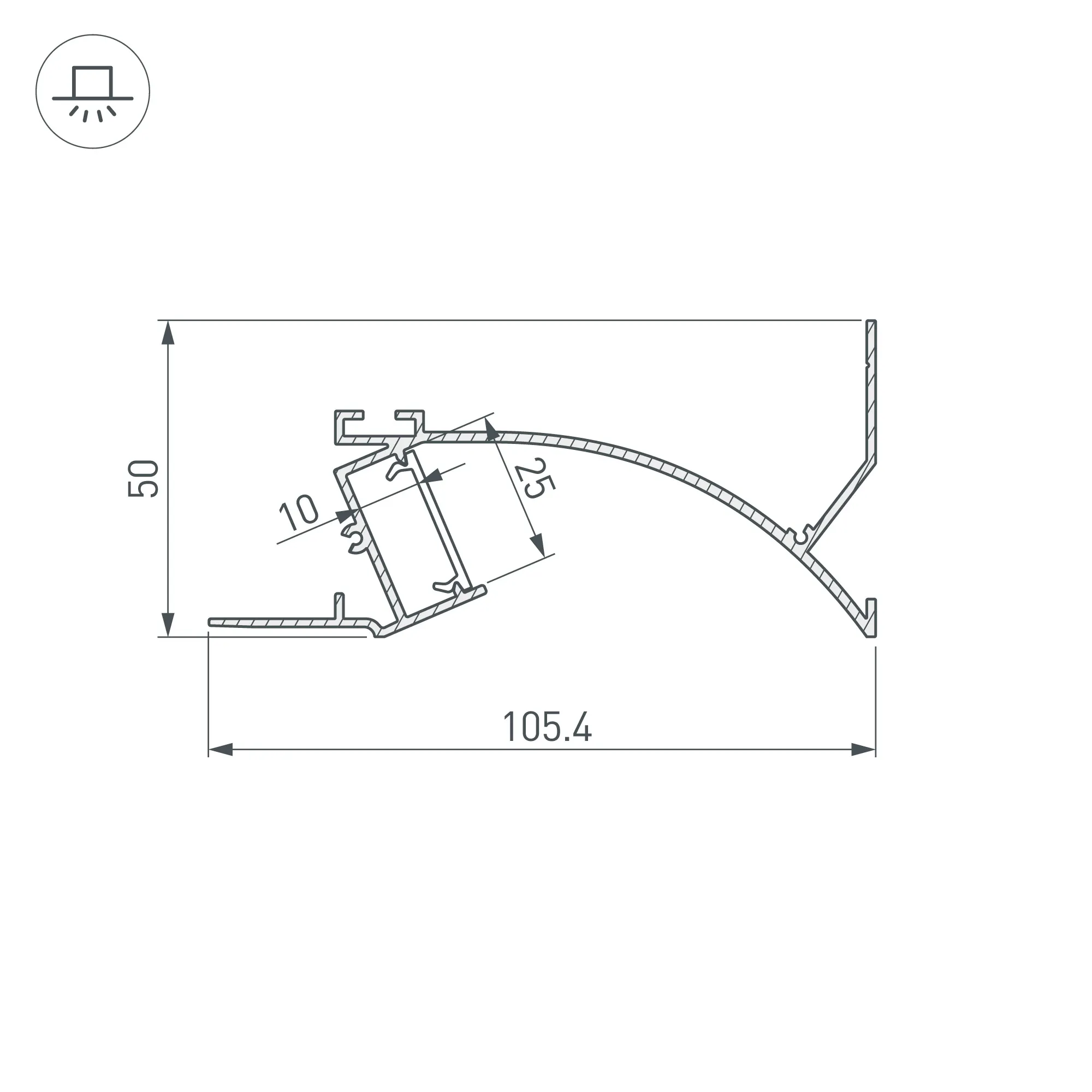 Комплект с экраном. Алюминиевый анодированный профиль для светодиодных лент и линеек. Габаритные размеры (L×W×H): 2000x105x50 мм. Ширина площадки для ленты 25 мм. Аксессуары приобретаются отдельно. Цена за комплект.