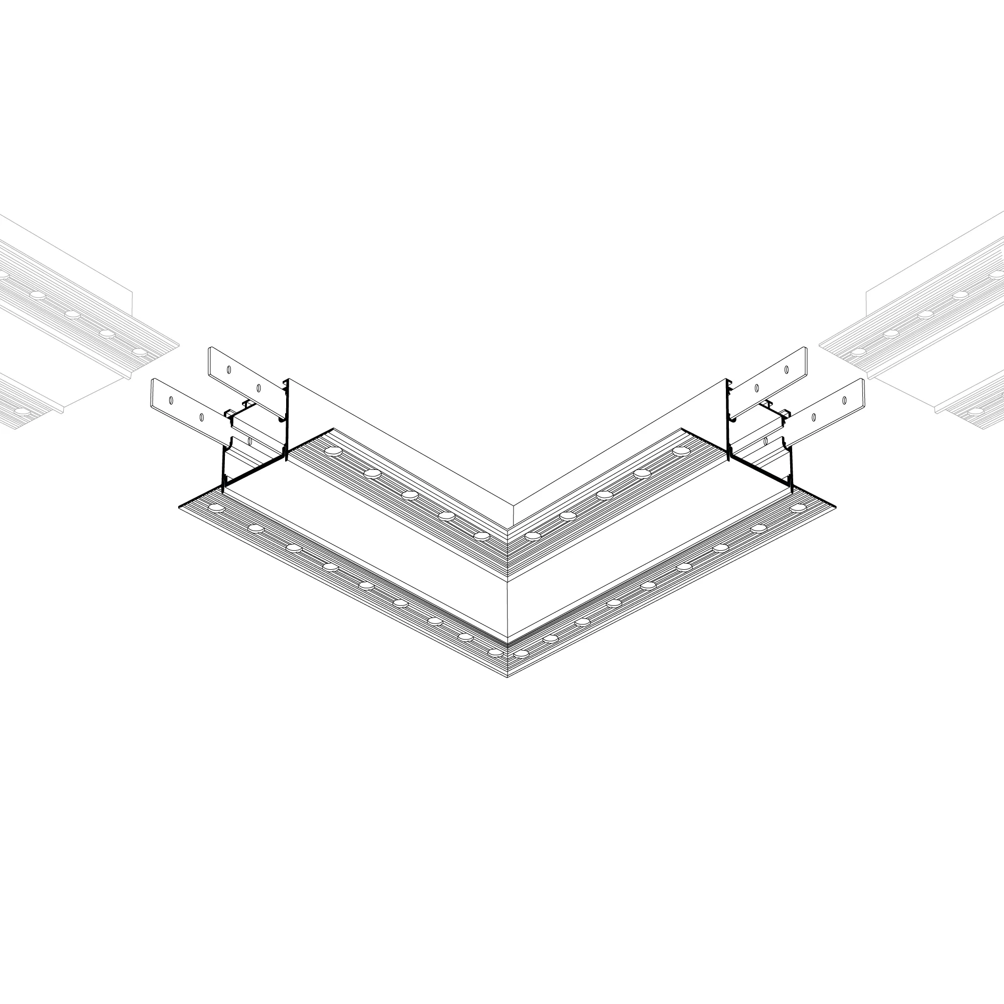 Угловой соединитель в сборе для профиля SL-LINIA32-FANTOM. В комплекте угол с экраном, соединители, винты, шестигранный ключ.