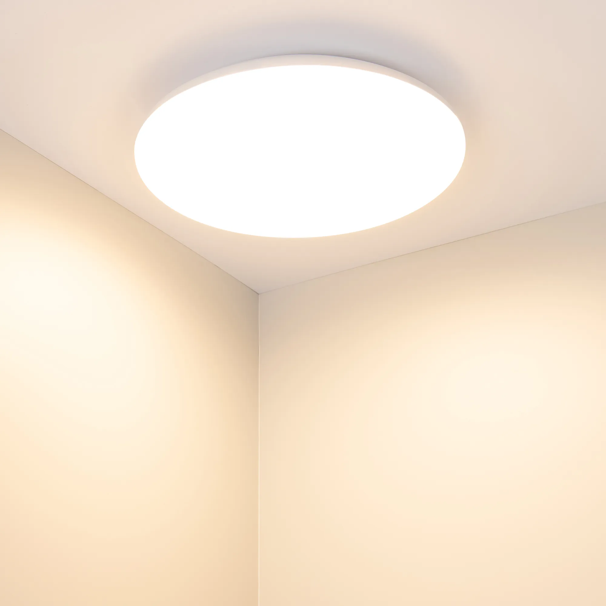 Накладной светильник 25Вт с микроволновым датчиком движения, белый круглый корпус (IK10). Цвет БЕЛЫЙ ТЕПЛЫЙ 3000К, св.поток 2300-2600лм, CRI(Ra)>80, угол 180°. Размер Ф380x50мм. Питание AC220-240V, 25Вт, драйвер встроенный (72V, 300mA).