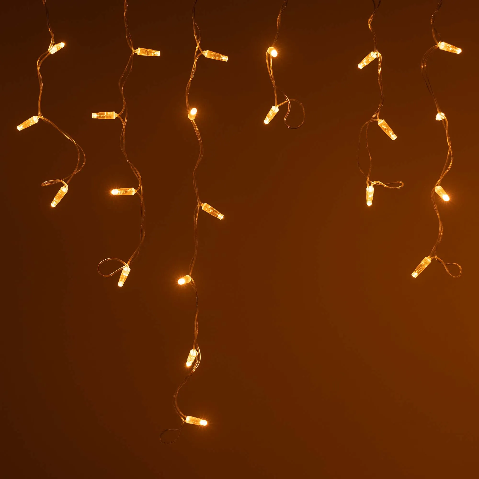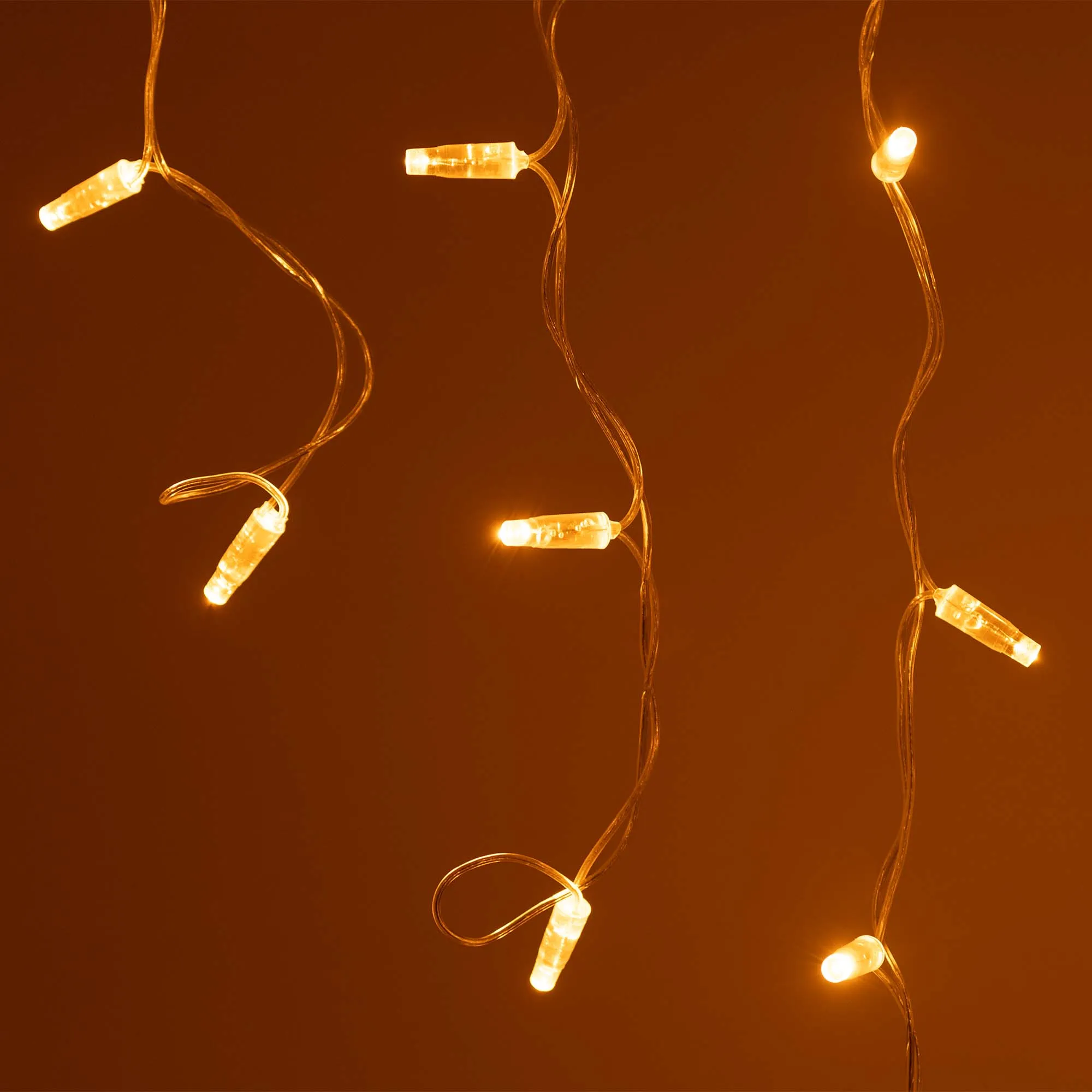 Светодиодная бахрома Classic. Размер 2400x600 мм (длина 2400 мм, по длине 24 нити высотой 200/600 мм). Количество светодиодов 88 шт размером 7 мм. Цвет свечения ЖЕЛТЫЙ, эффект постоянного свечения с резким световым рисунком (прозрачная вогнутая линза). Провод прозрачный, ПВХ. Питание 230 В, Мощность 6 Вт, защита IP65, применение на улице под навесом. Аксессуары для подключения приобретаются отдельно.