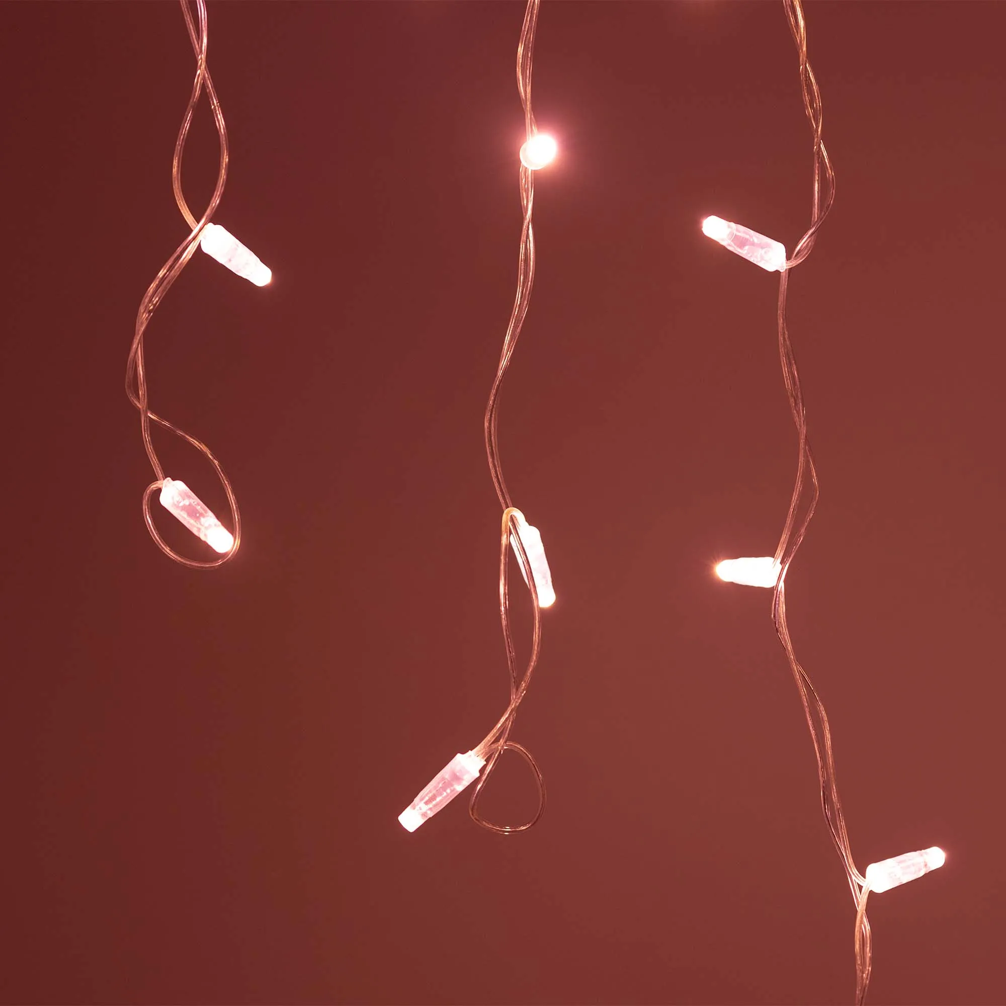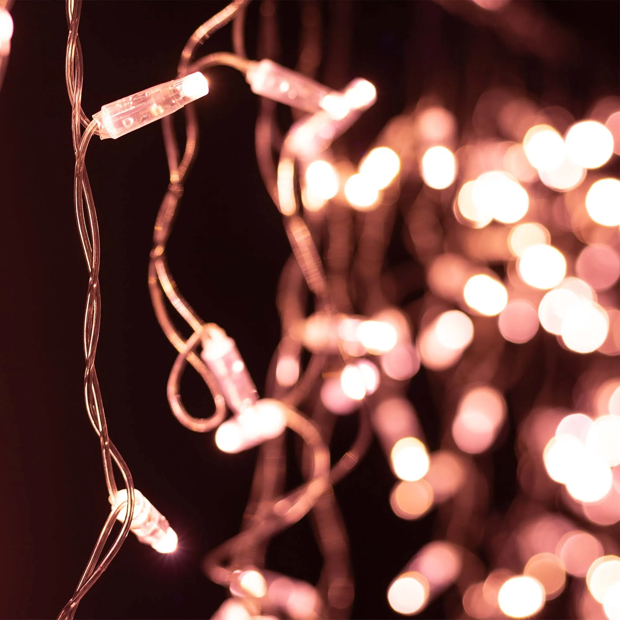 Светодиодная бахрома Classic. Размер 2400x600 мм (длина 2400 мм, по длине 24 нити высотой 200/600 мм). Количество светодиодов 88 шт размером 7 мм. Цвет свечения РОЗОВОЕ ЗОЛОТО, эффект постоянного свечения с резким световым рисунком (прозрачная вогнутая линза). Провод прозрачный, ПВХ. Питание 230 В, Мощность 6 Вт, защита IP65, применение на улице под навесом. Аксессуары для подключения приобретаются отдельно.